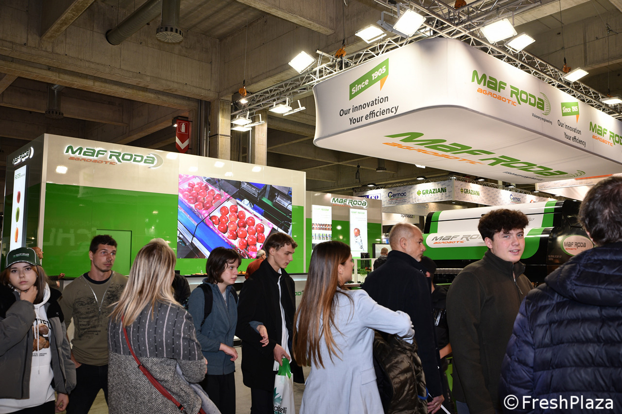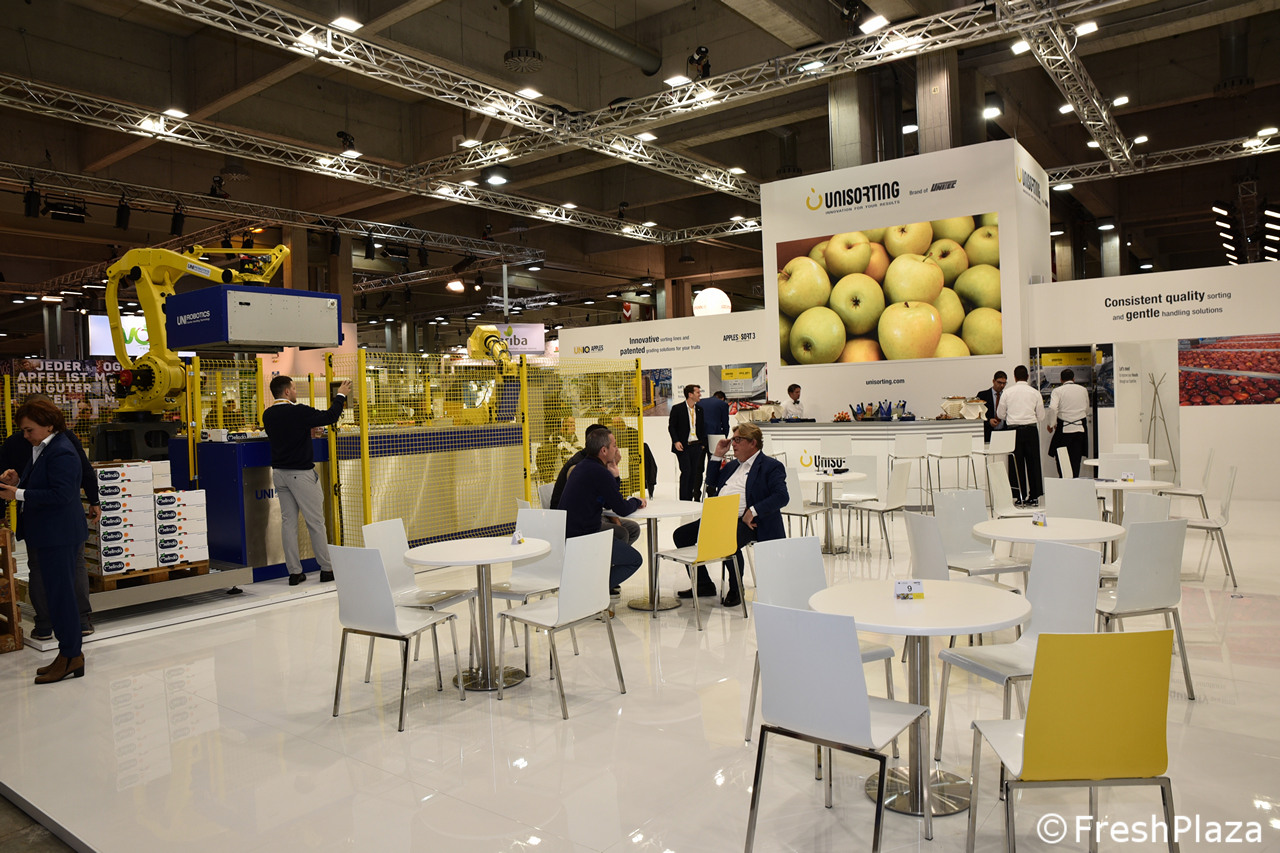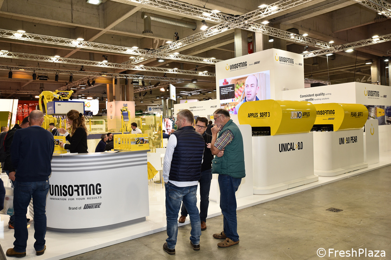 Stand Aweta, azienda specializzata in soluzioni per la selezione e il confezionamento di frutta e verdura