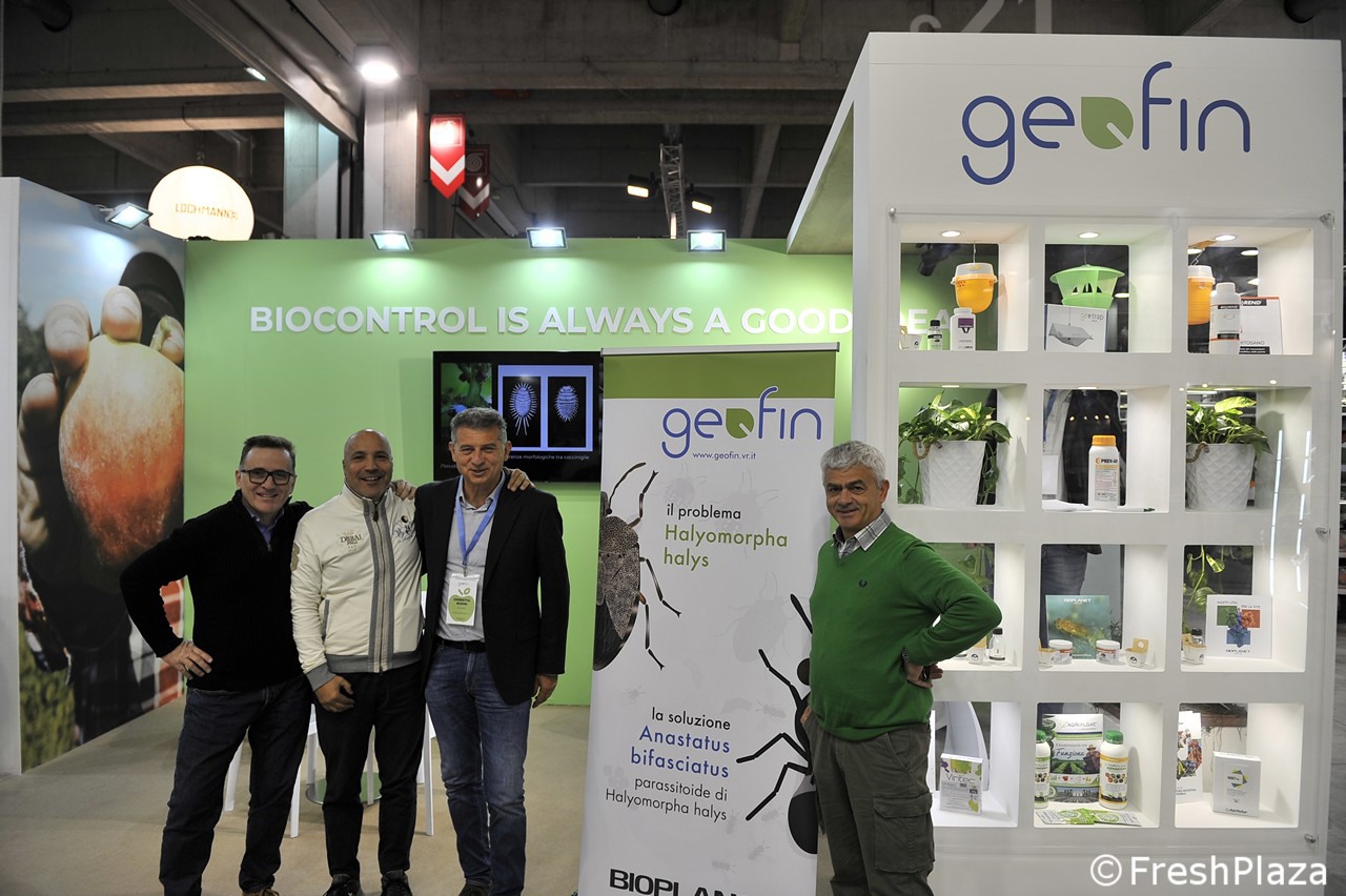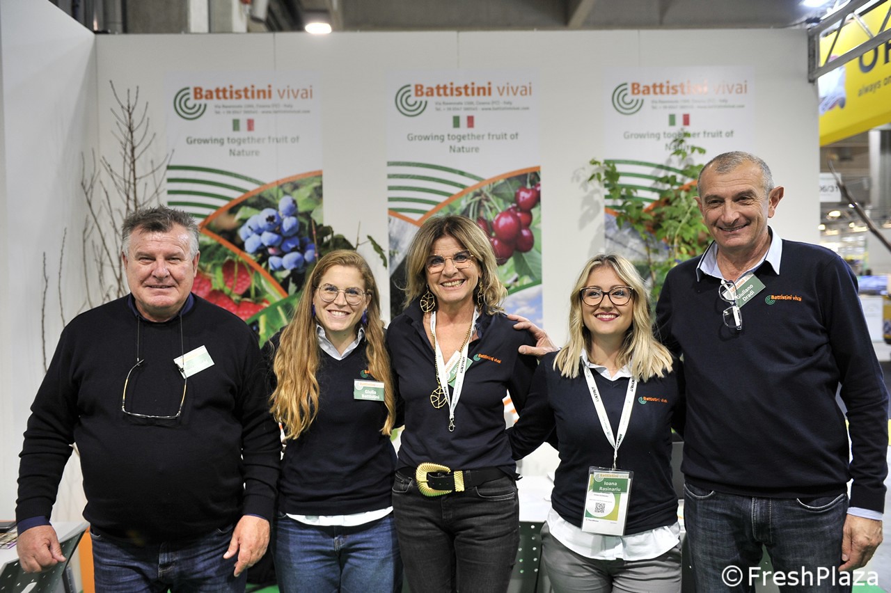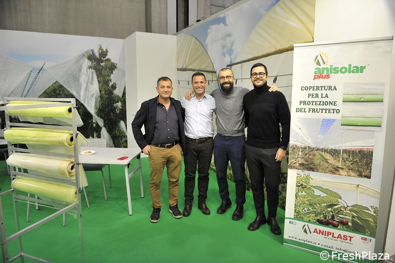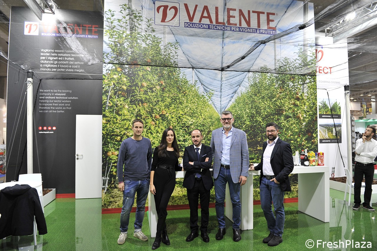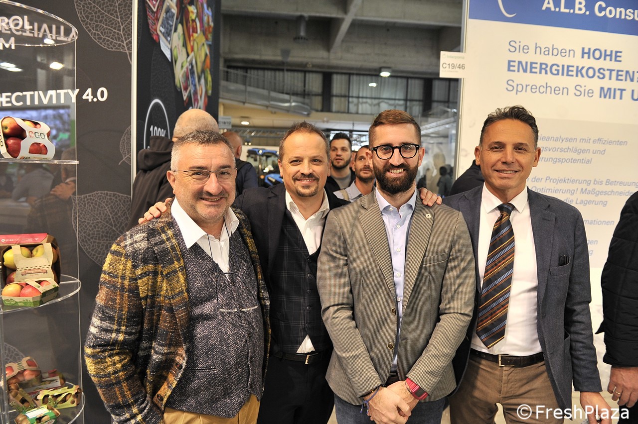 Foto di gruppo allo stand Apofruit. primo a destra il direttore Ernesto Fornari