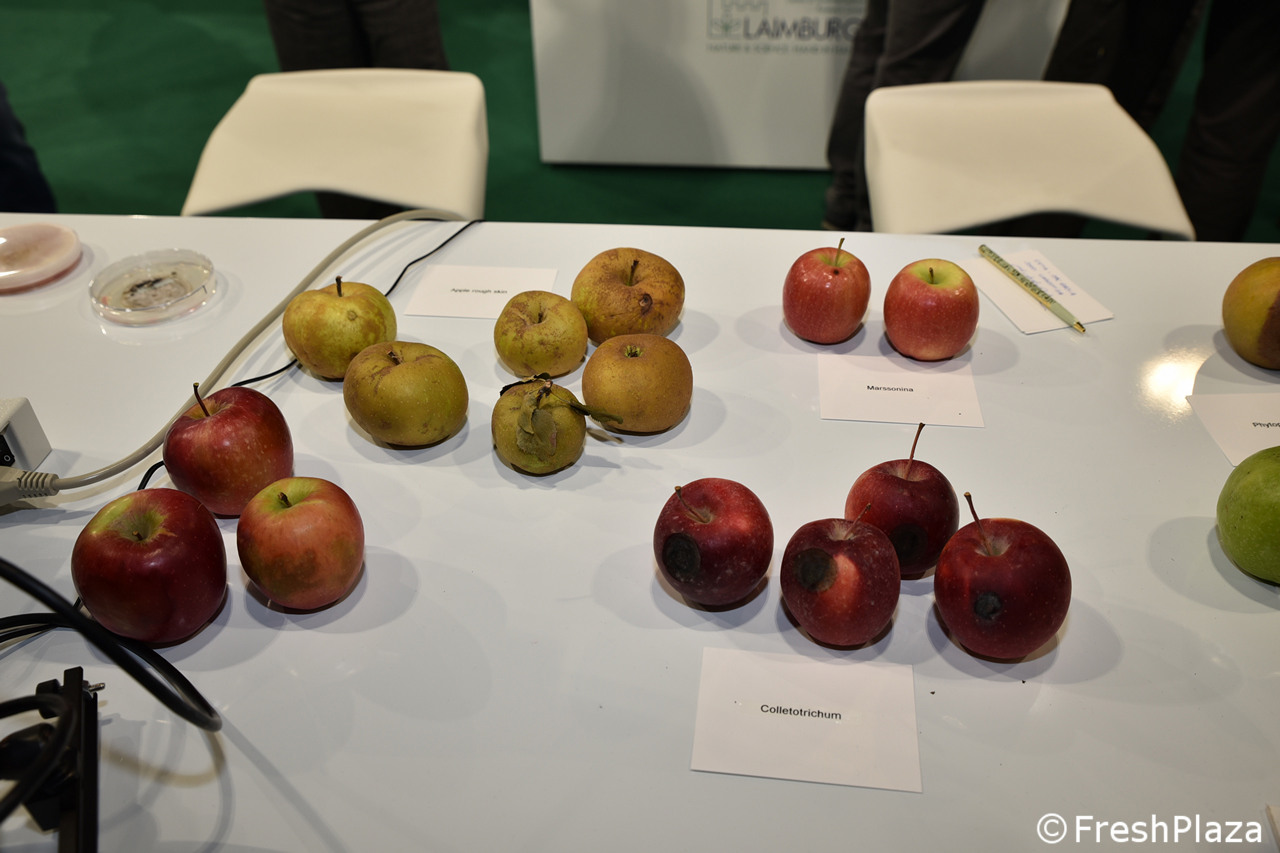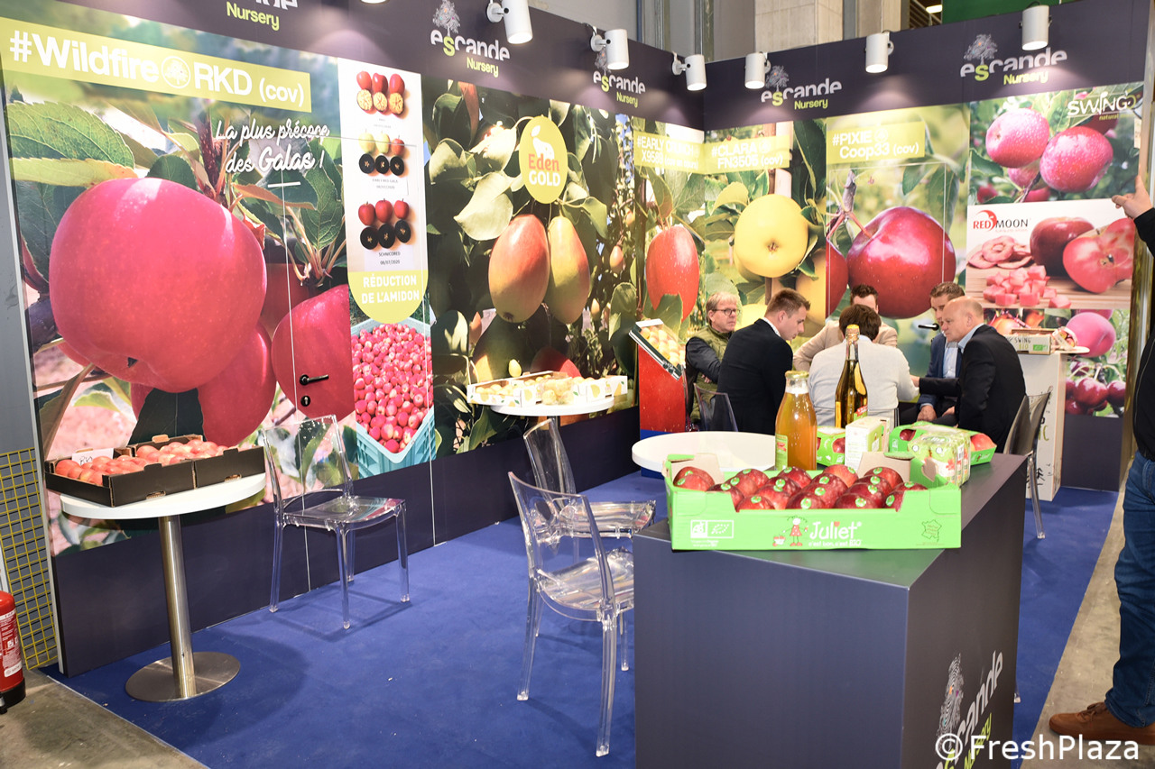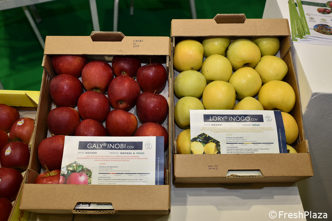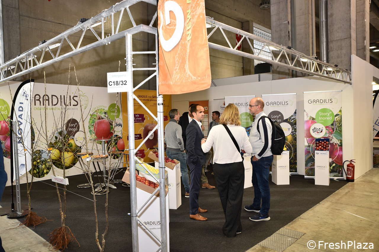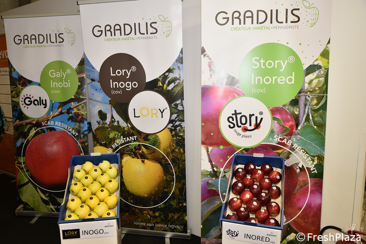 Stand del gruppo francese Gradilis, specialisti nello sviluppo varietale e con un'esperienza ventennale nella selezione di mele resistenti alla ticchiolatura.