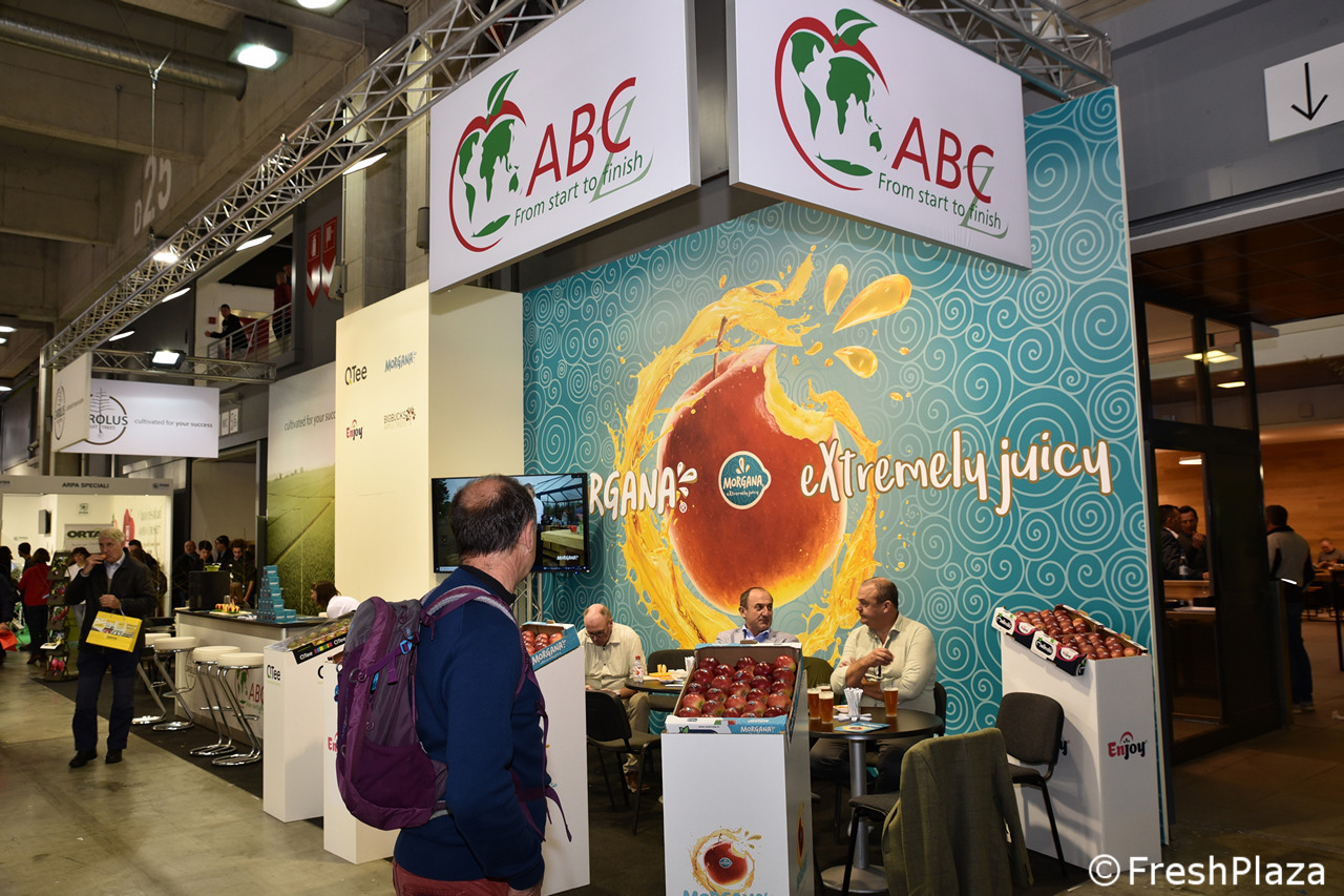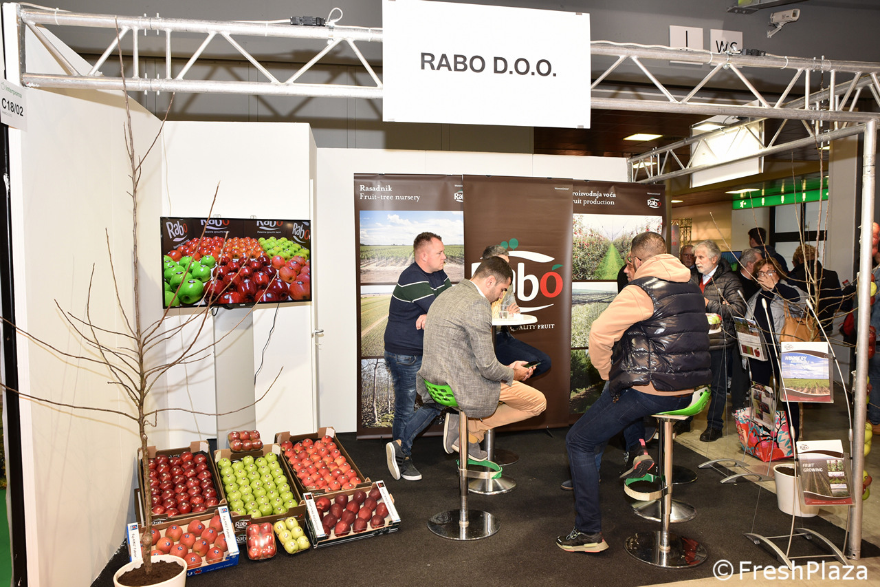 Stand della croata Rabo D.O.O., produttrice di frutta con 120 ettari destinati solo al melo e con vivaio da 1 milione di alberi da frutto prodotti.