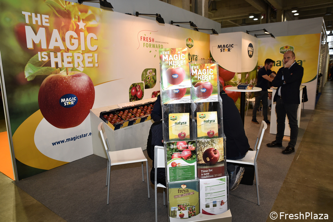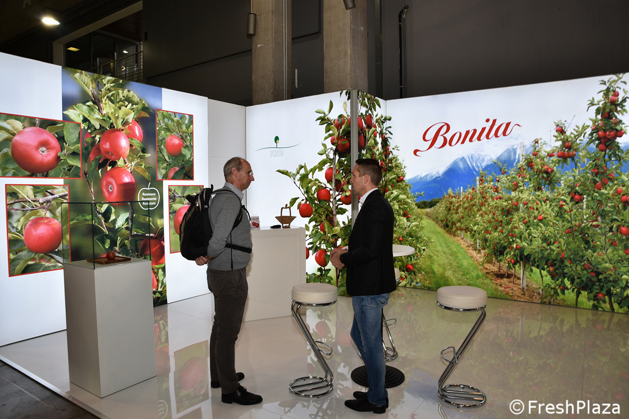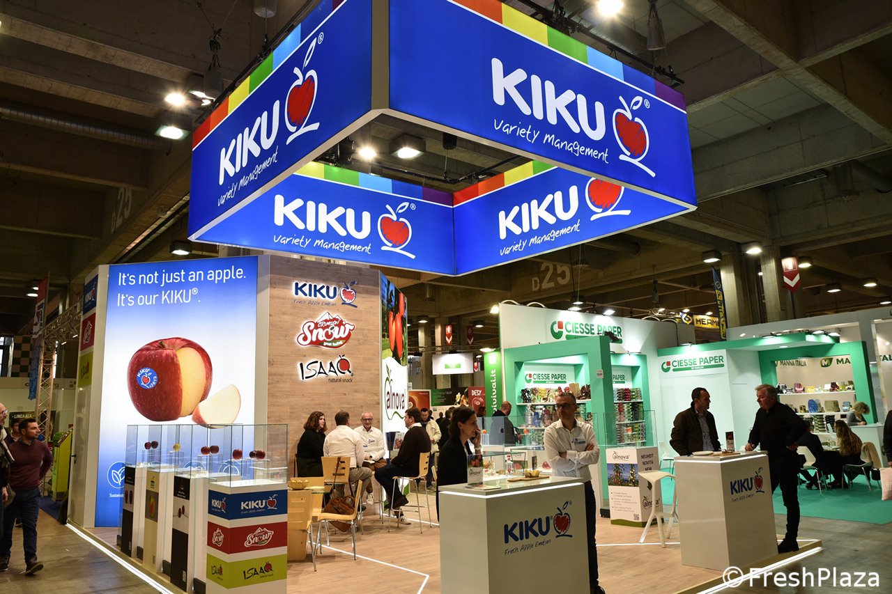Uno stand d'impatto, quello del brand KIKU, celebre mela insieme ad altre come Isaaq e Crimson Snow selezionate dai Vivai Braun.