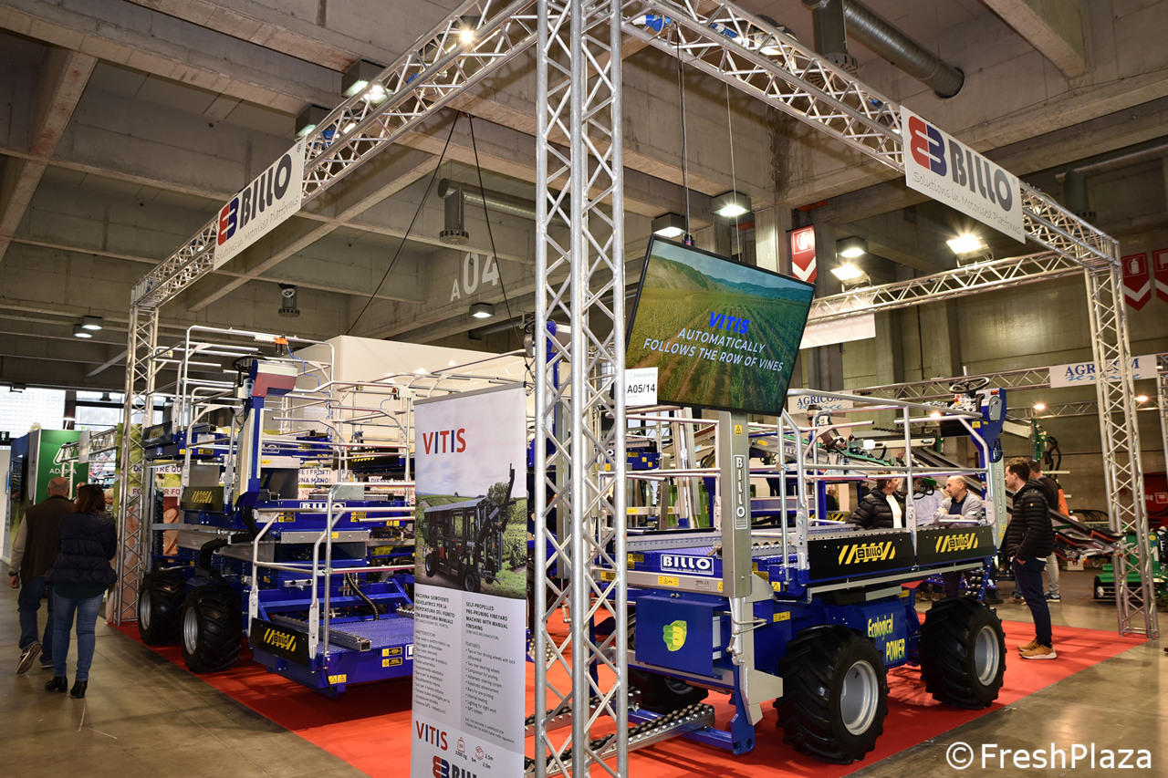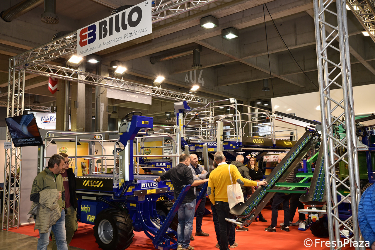 Carri raccolta frutta semoventi e trainati per il frutteto allo stand N.Blosi.