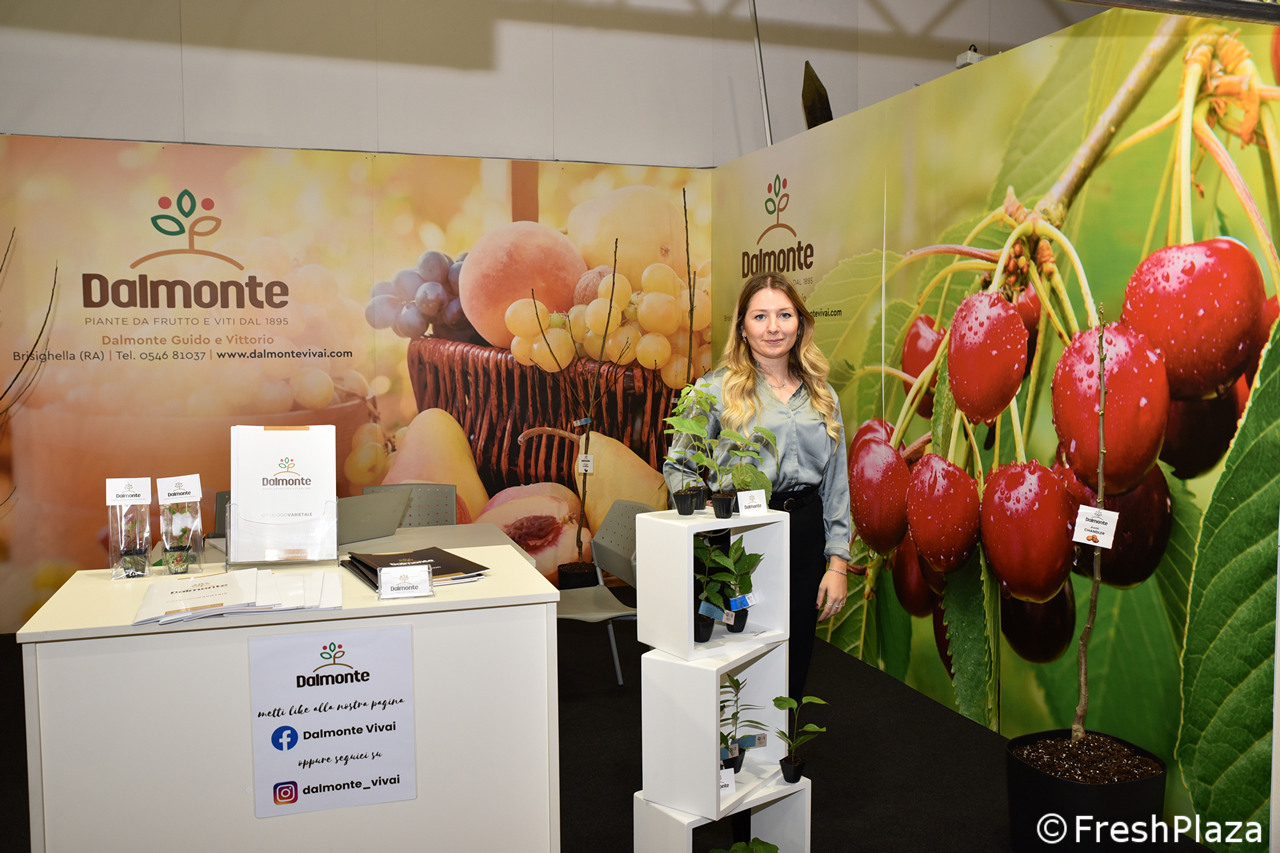 Lo stand della Dalmonte Vivai, che commercializza varietà di piante da frutto e viti.