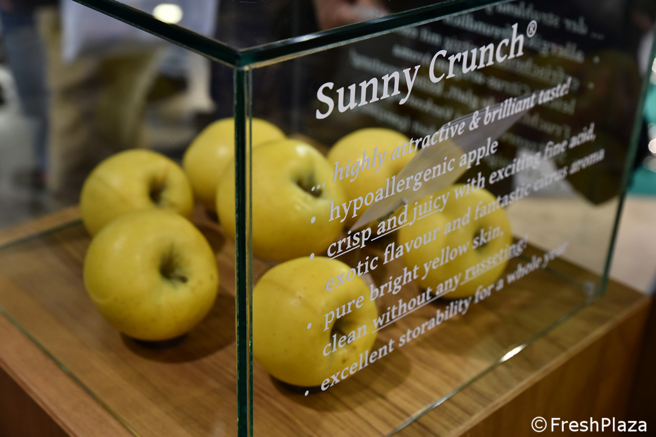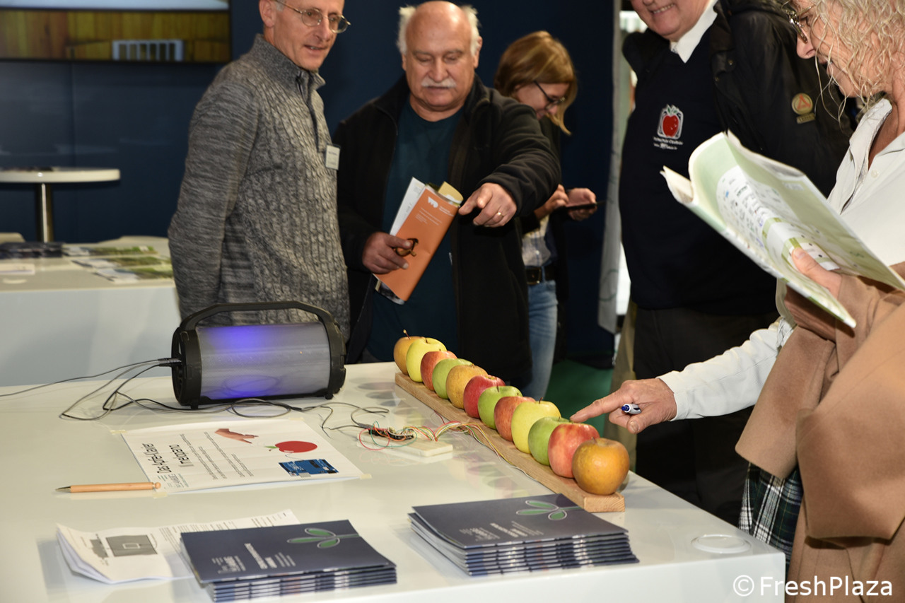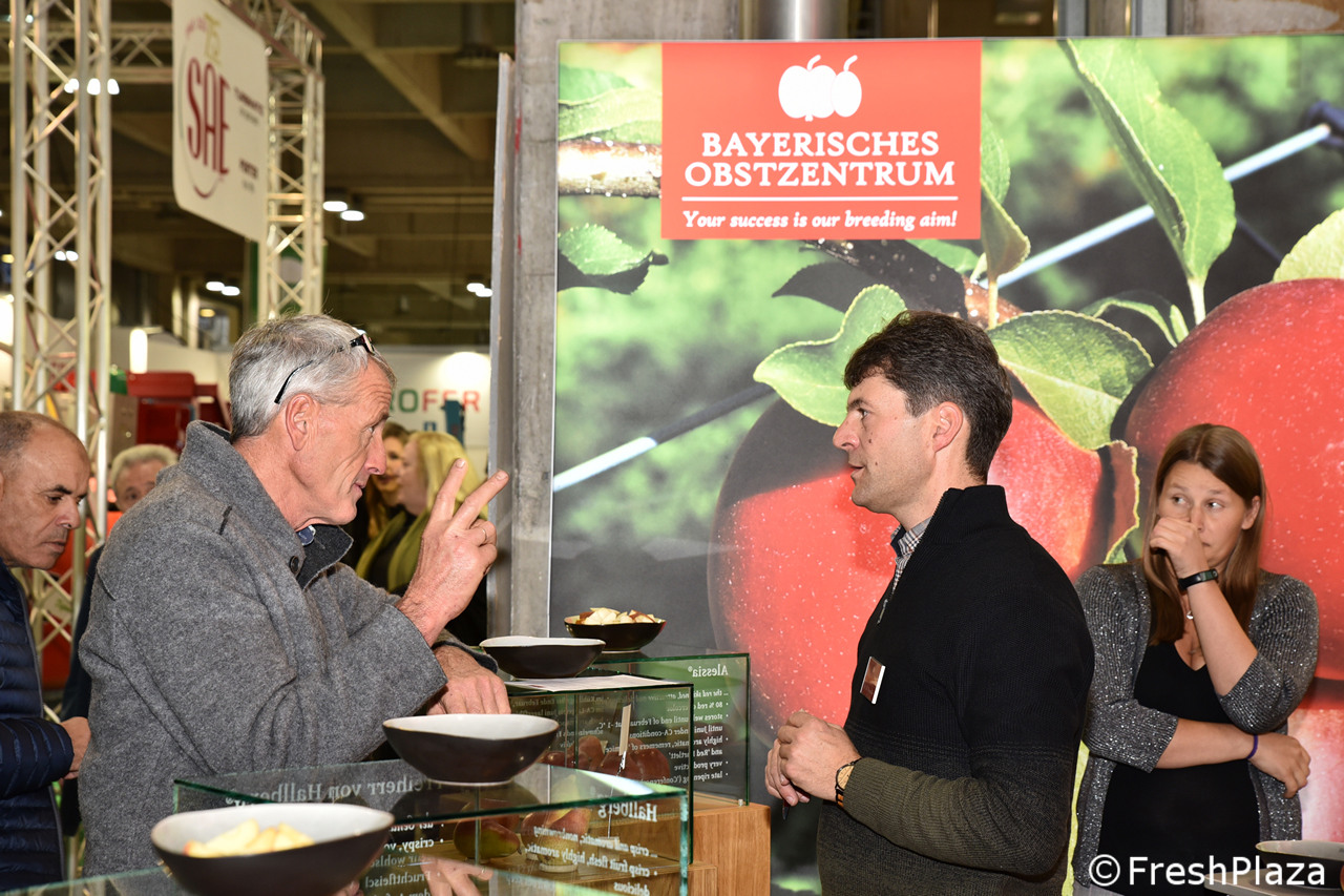 Nello stand del Bayerisches Obstzentrum (Centro bavarese di pomologia e di breeding della frutta) sono state allestite delle teche, con vetrofanie descrittive per le varie selezioni, alcune delle quali connotate da un tratto ipoallergenico. Vedi una carrellata nelle foto seguenti.