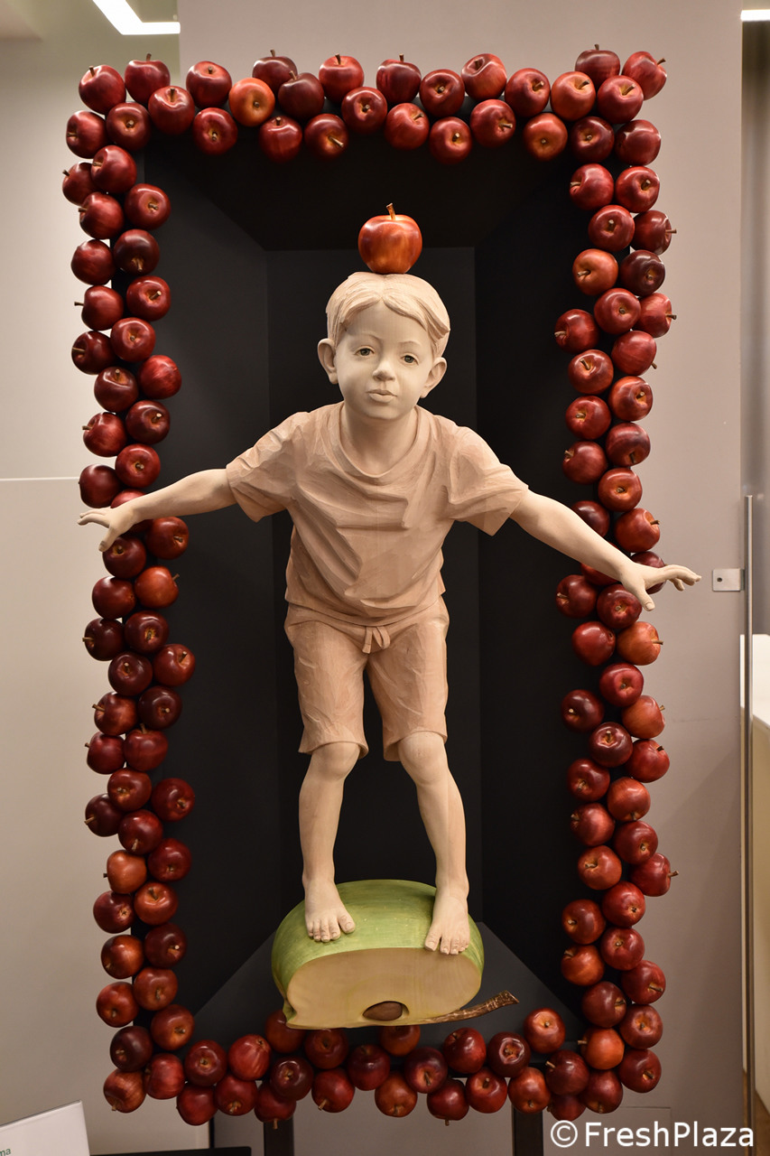 Presso il grande stand collettivo Apot, un bell'allestimento di mele del Consorzio Melinda, da sempre attivo in progetti e soluzioni che aumentino la sostenibilità della melicoltura trentina.