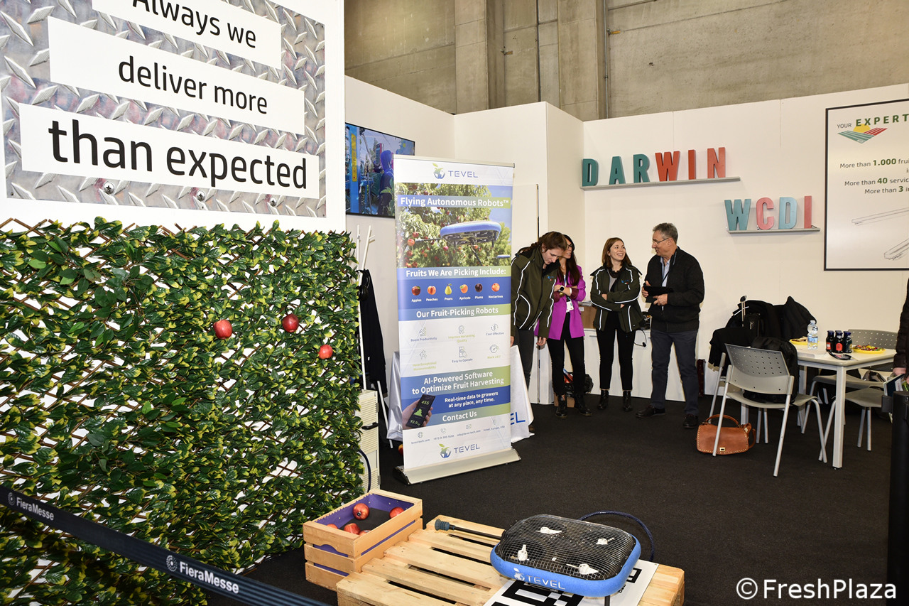 Anche in questo stand era possibile vedere all'opera il drone raccoglitore sviluppato dalla Tevel Aerobotics Technologies, una startup israeliana che ha sviluppato robot volanti autonomi (FAR), gli unici nel mondo a raccogliere frutta.