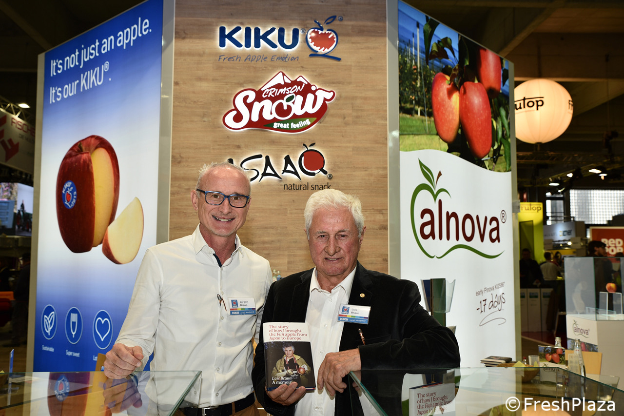 Jürgen Braun con il padre Luis. Durante Interpoma 2022 è stata presentata anche una biografia, pubblicata in Tedesco e in Inglese, dedicata alla vita eccezionale di Luis e concepita dai figli come dono di compleanno per gli 80 anni del celebre vivaista.
