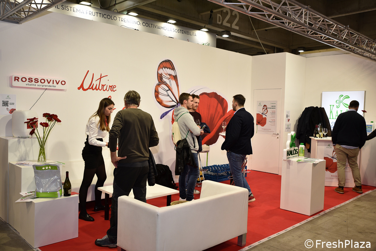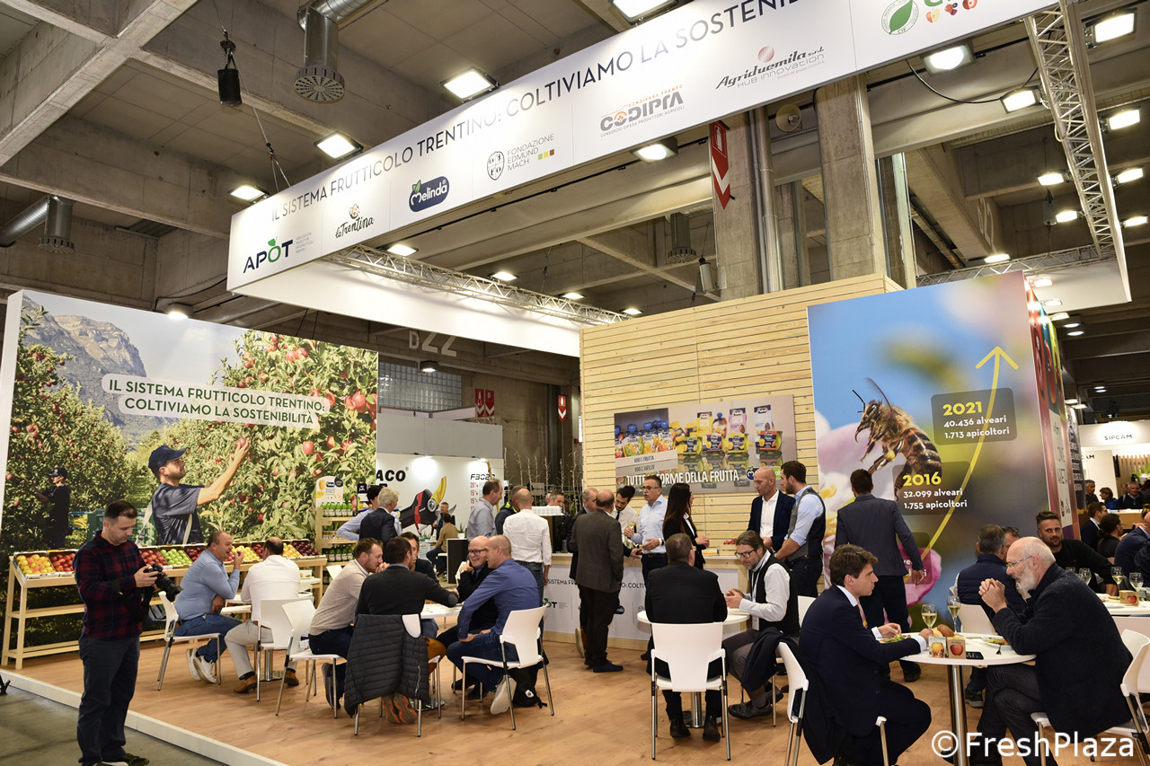 Stand collettivo della Apot – Associazione Produttori Ortofrutticoli Trentini. I soci Apot sono i Consorzi Melinda, La Trentina, Società Frutticoltori Trento (SFT) e Co.P.A.G.. Con tale base associativa Apot rappresenta circa il 90% del totale del settore frutticolo Trentino.