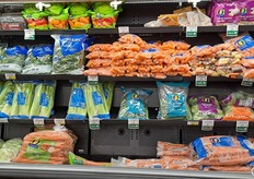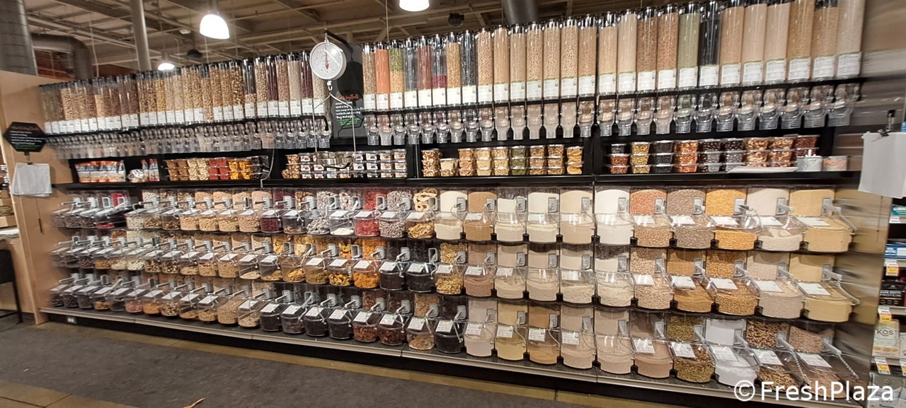 Alle spalle del reaparto ortofrutta ci sono i dispenser con frutta secca e legumi secchi