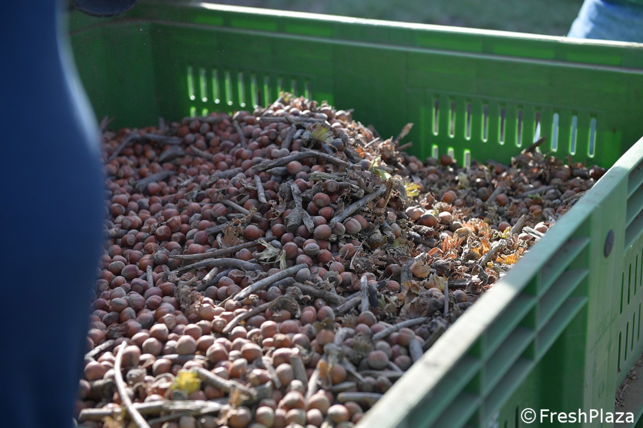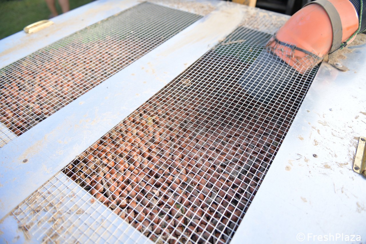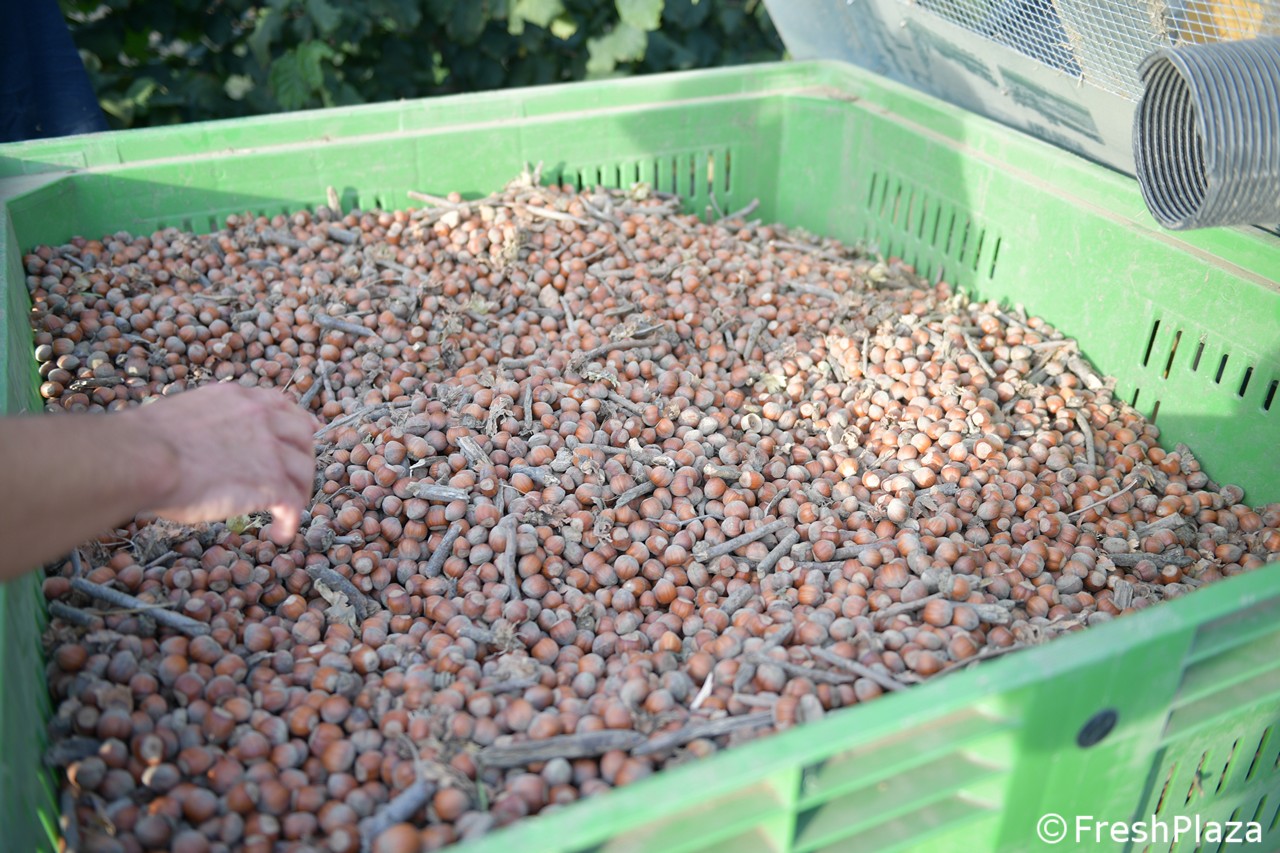 Scarico delle nocciole raccolte