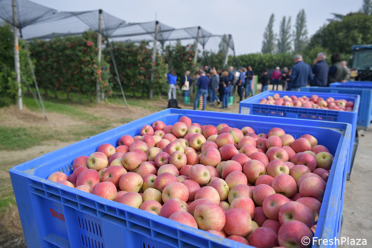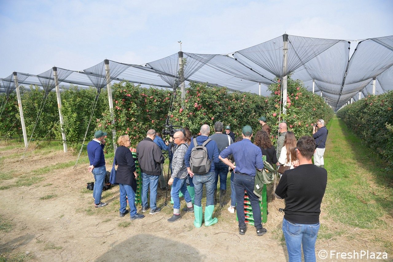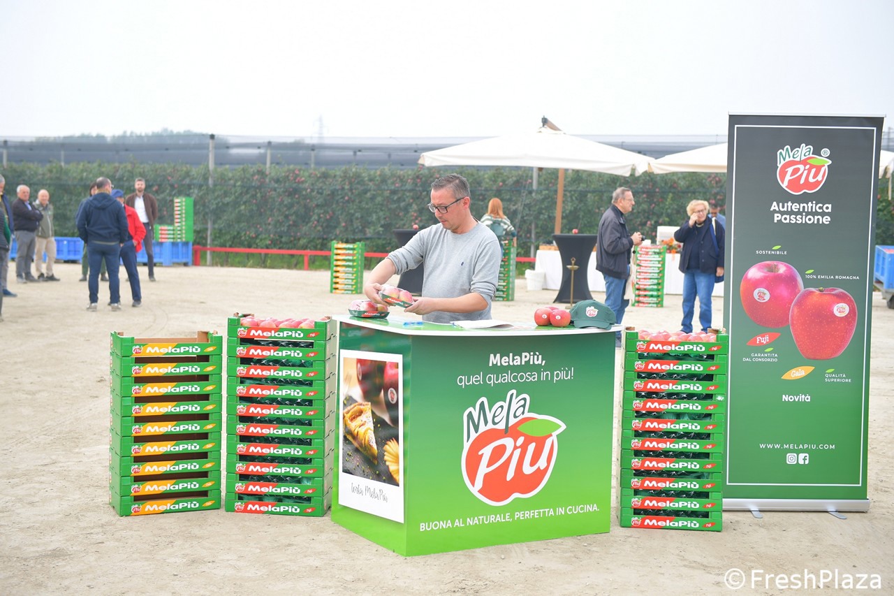 Con una superficie produttiva di 500 ettari e una quantità potenziale di 18mila tonnellate, il Consorzio Melapiù si conferma una realtà fondamentale nel comparto mele italiano. E attende il marchio Igp del quale dovrebbe fregiarsi dall'autunno 2025. Il 15 ottobre a Baura di Ferrara, presso l'azienda agricola Fugaroli, il Consorzio ha organizzato una giornata in campo per gli operatori della comunicazione, durante le fasi della raccolta. (fotoservizio Cristiano Riciputi)