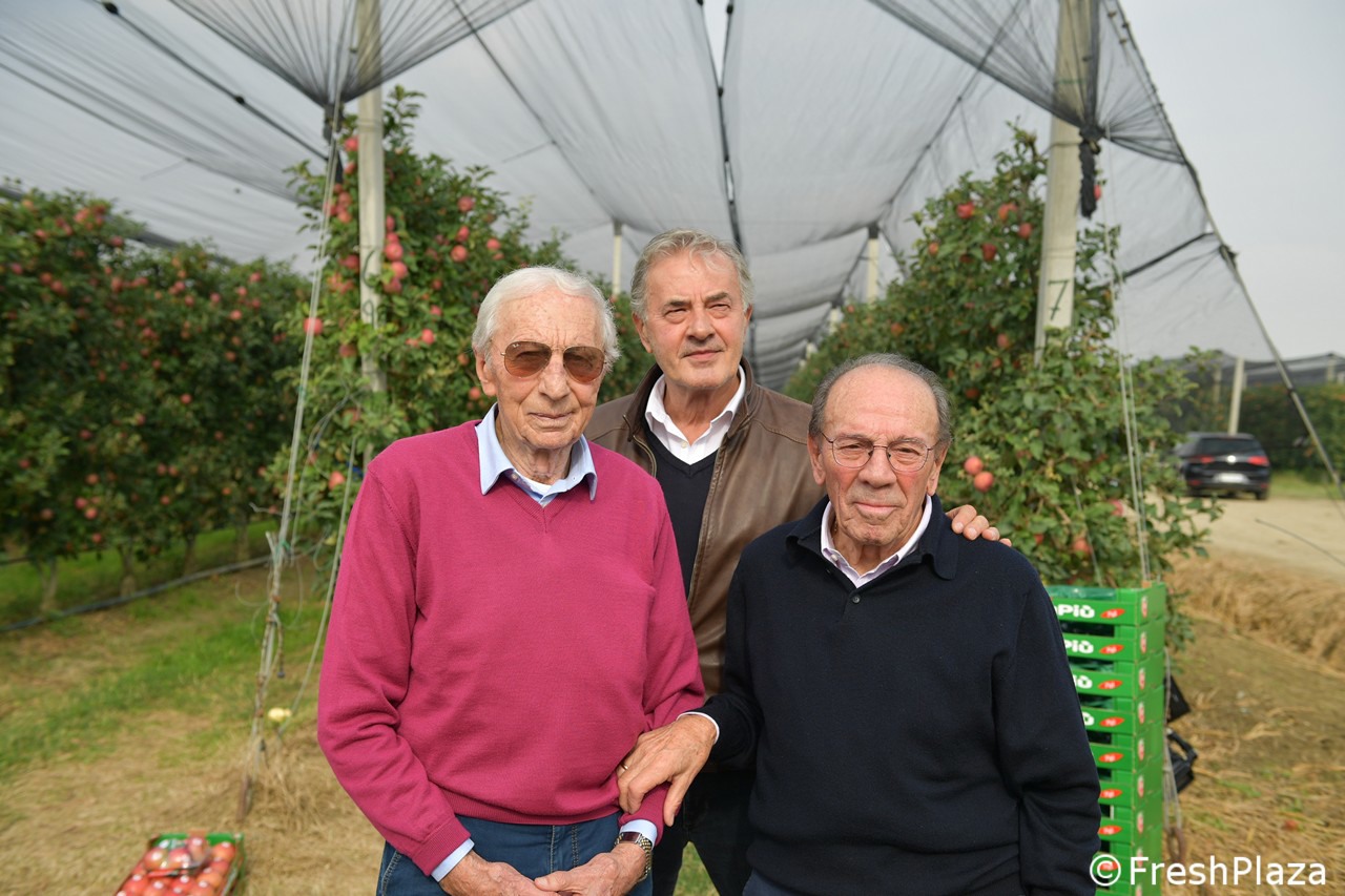 Da sinistra, Mauro Bruni (direttore Consorzio Melapiù), Vittorio Fugaroli (azienda agricola Fugaroli) e Matteo Mazzoni (presidente Consorzio Melapiù)