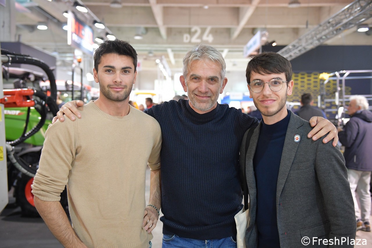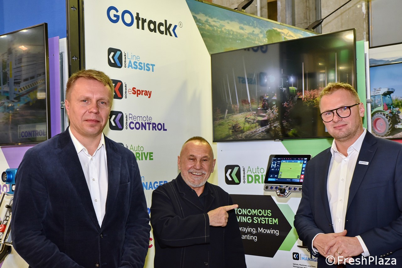 Marcin Lis (Gotrack), Carlo Lingua (Fattorie Lingua) e Marcin Janus (Gotrack). Carlo Lingua è il soddisfatto ed entusiasta primo cliente italiano della ditta polacca Gotrack, ideatrice e realizzatrice di un innovativo trattore a guida autonoma senza conducente.