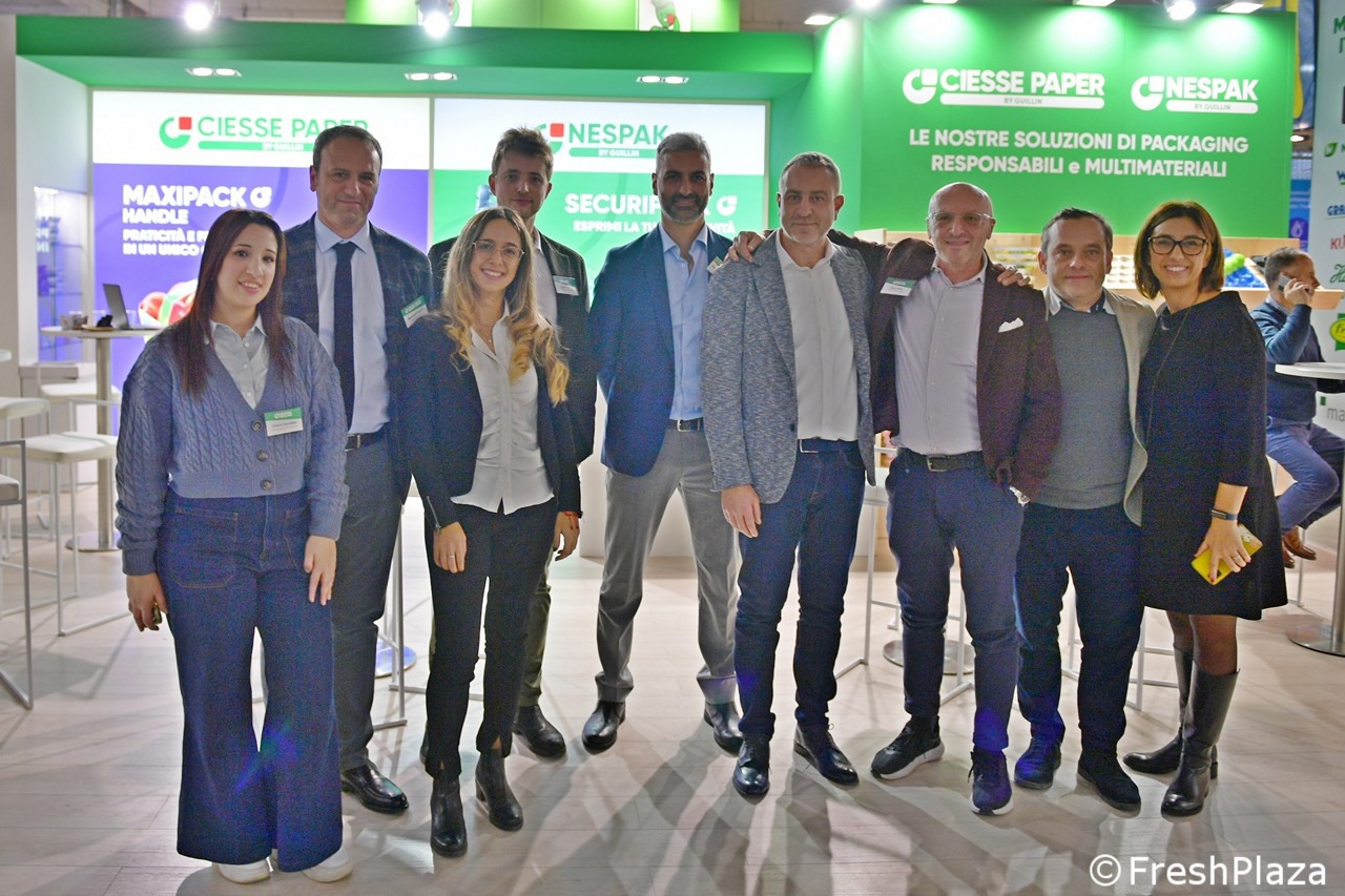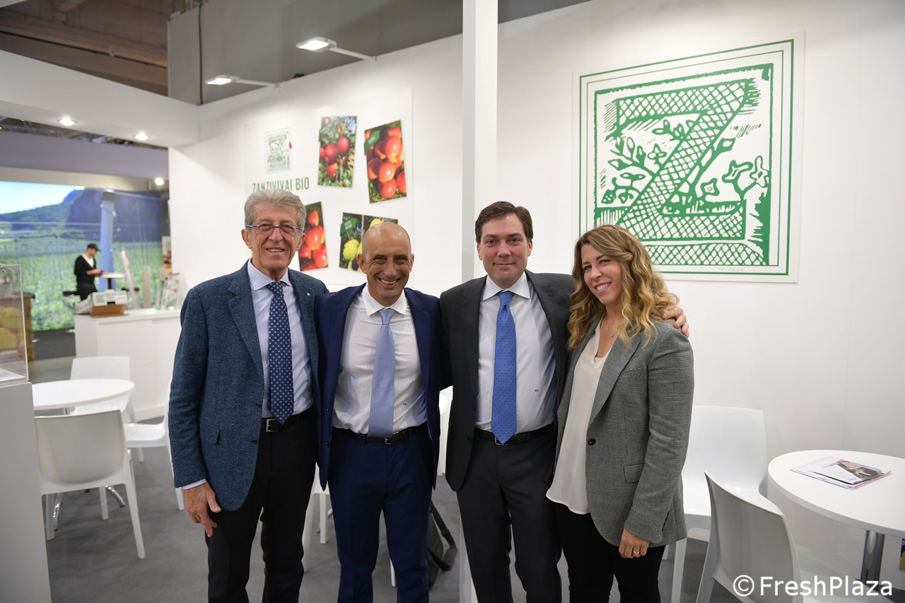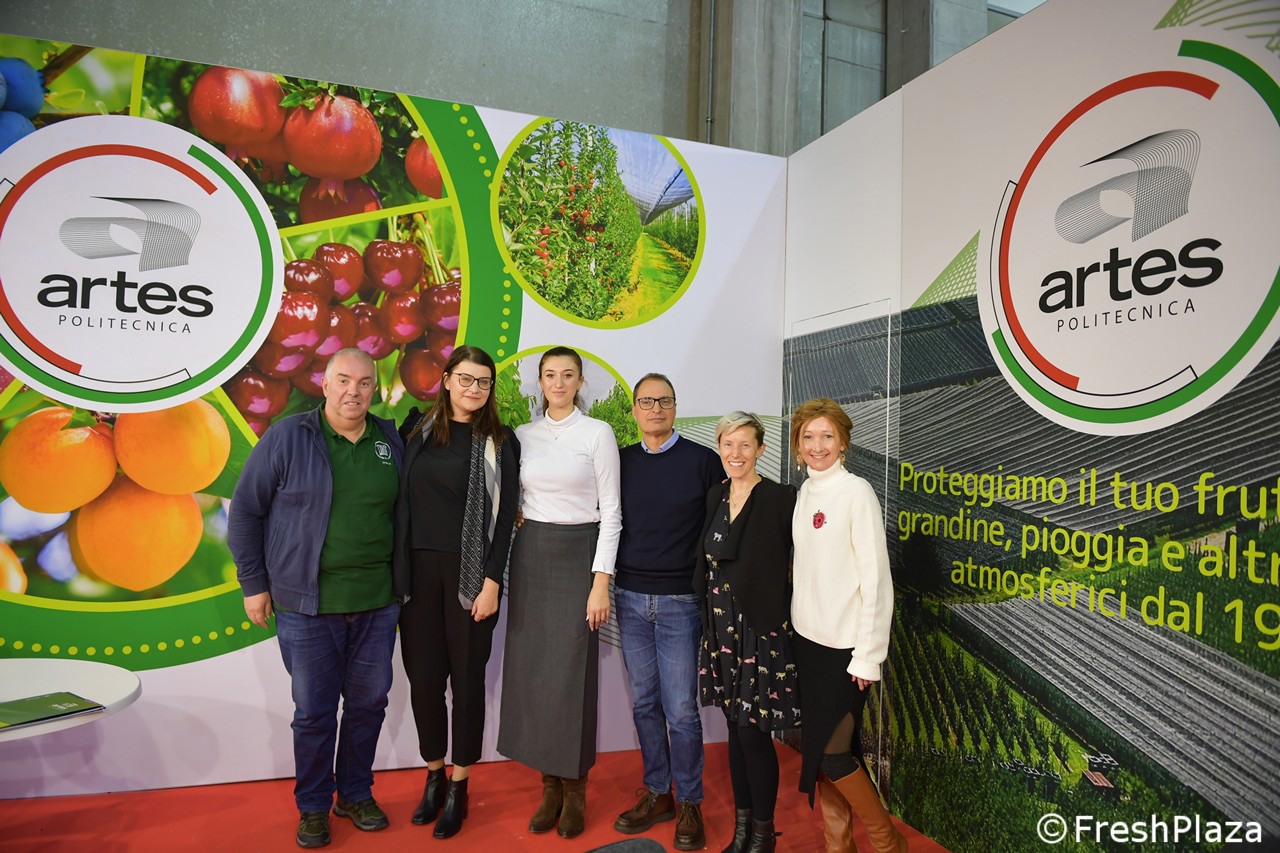 Foto di gruppo allo stand Apofruit, impresa cooperativa che da oltre 60 anni opera con proprie strutture e Soci produttori dal nord al sud dell'Italia.