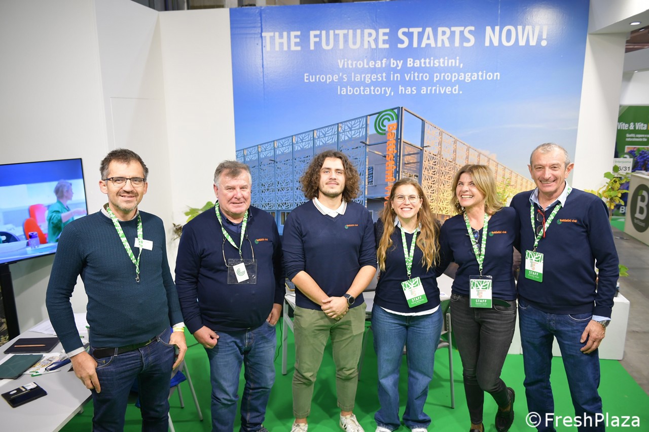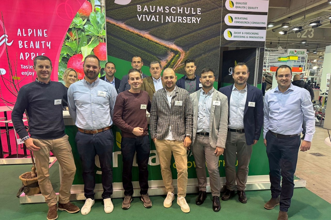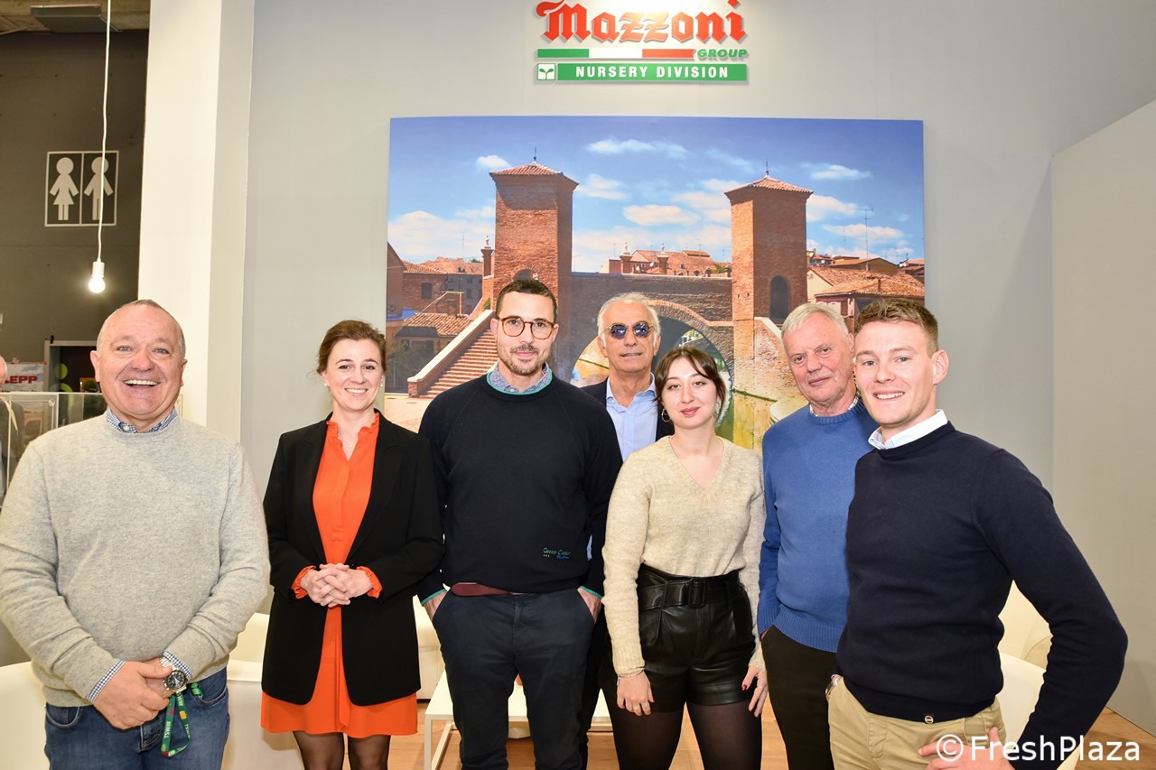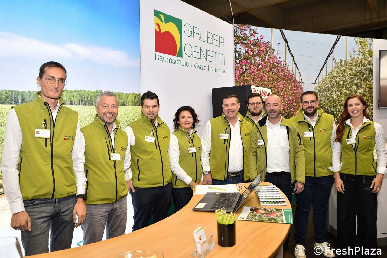 Il riconoscibile staff presso lo stand del vivaio Gruber Genetti, con sede produttiva a Roverchiara, in provincia di Verona.