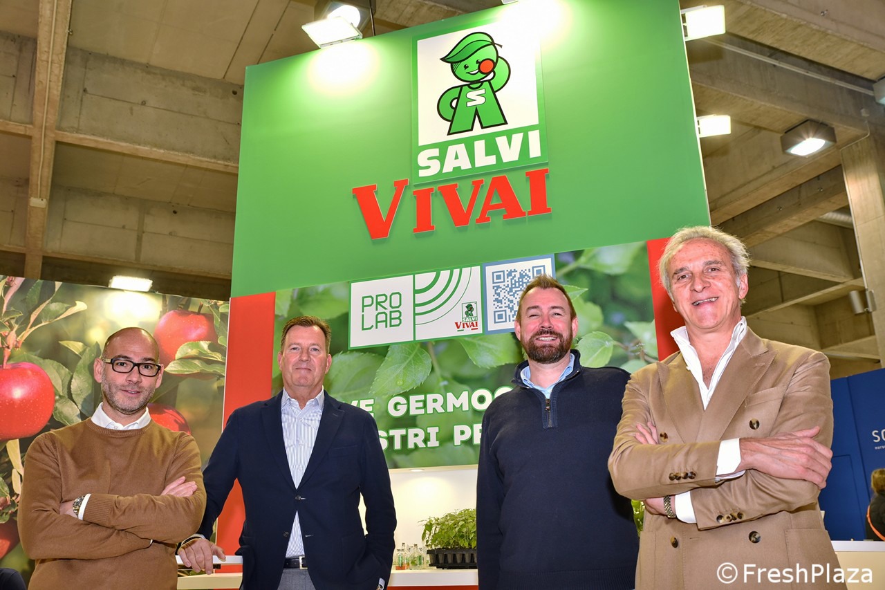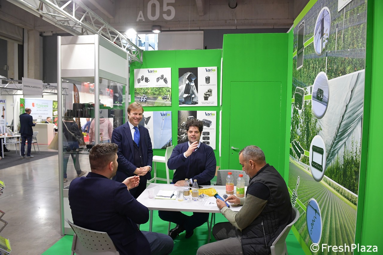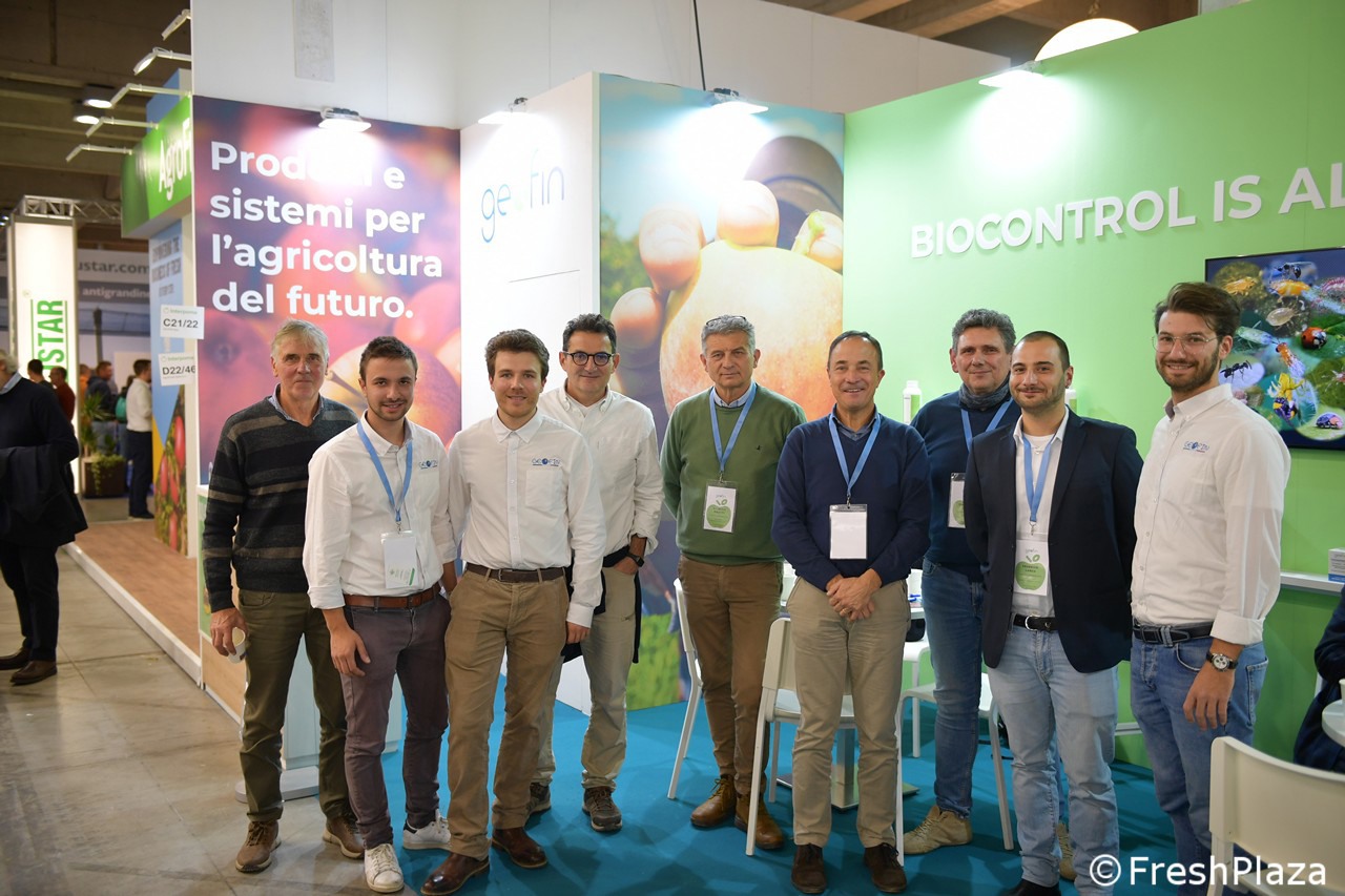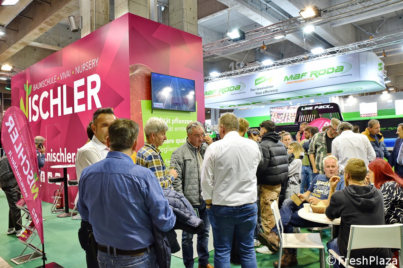 Il riconoscibile staff presso lo stand del vivaio Gruber Genetti, con sede produttiva a Roverchiara, in provincia di Verona.