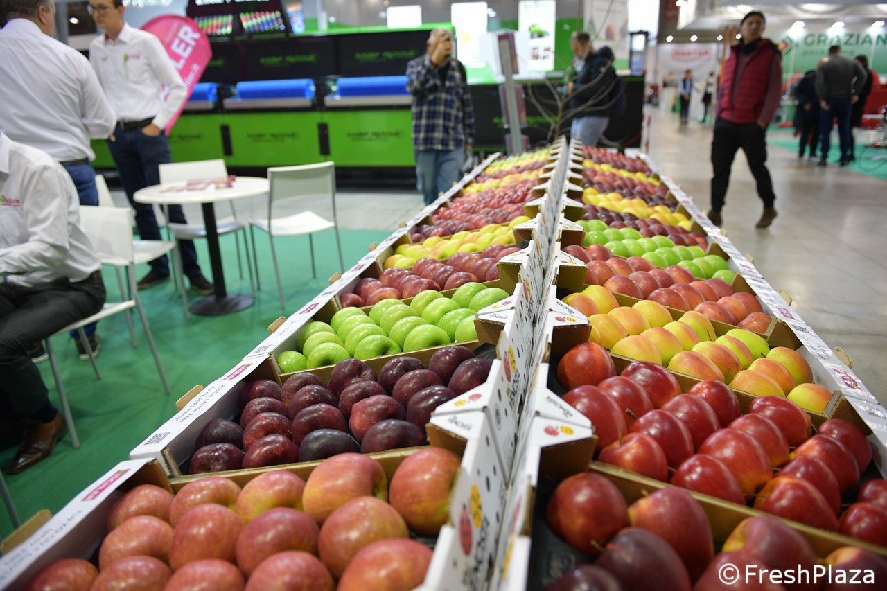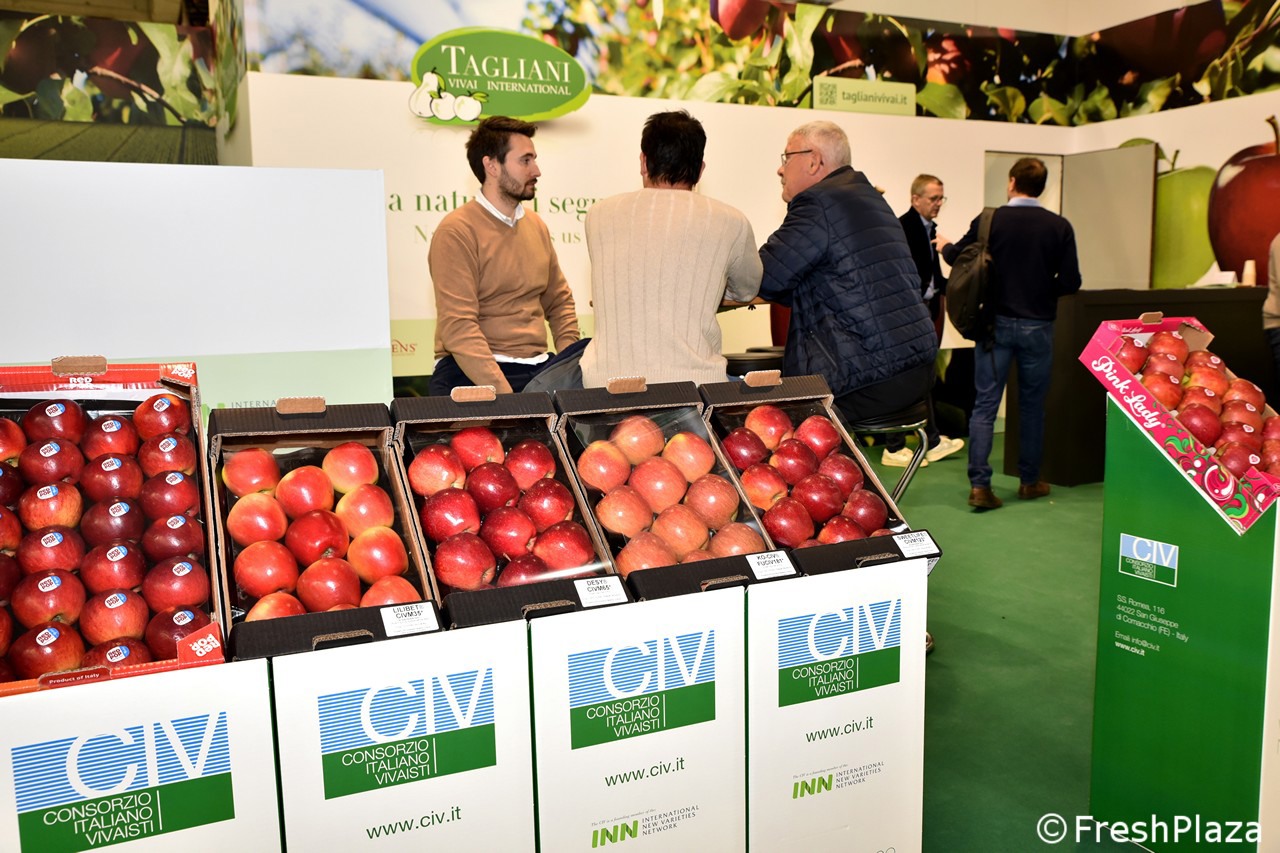 Esposizione di mele CIV presso lo stand della Tagliani Vivai.