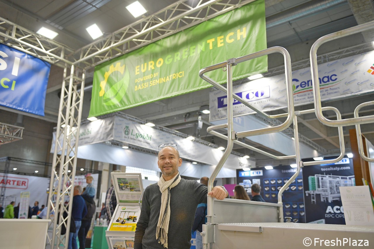 Marco Bastia di Euro Green Tech, azienda che si realizza agevolatori / carri raccolta per frutta e che fa parte del gruppo Bassi