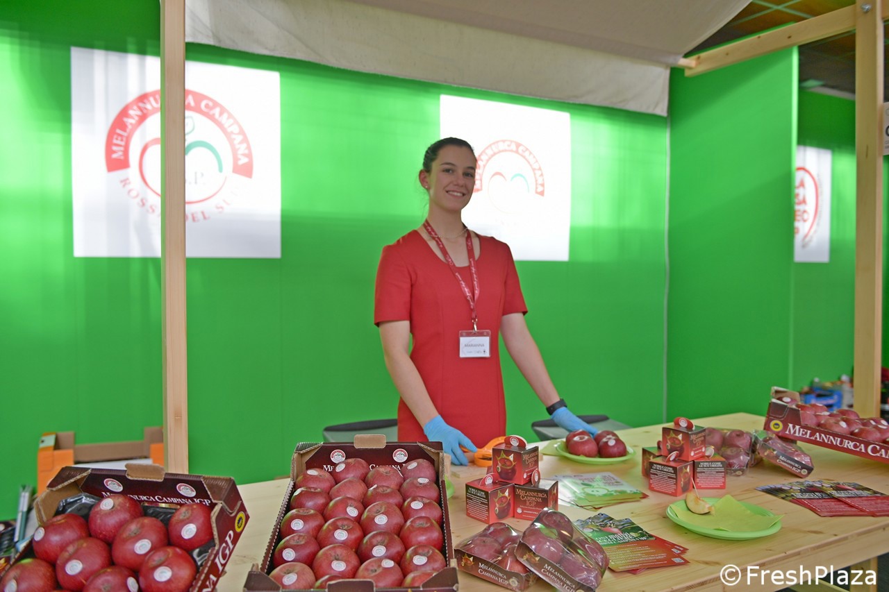 Molti stand hanno offerto degustazioni di mela ai visitatori.