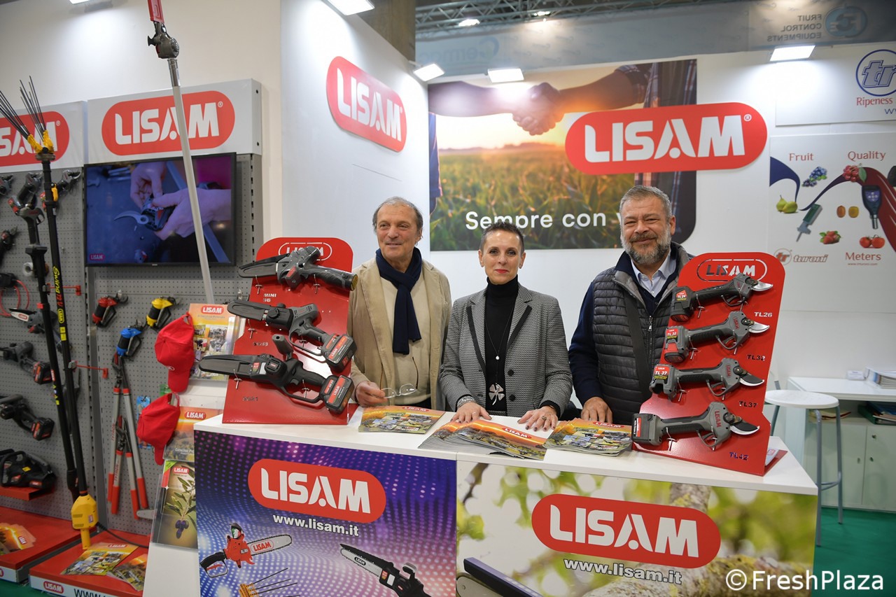 L'azienda Lisam (di Imola, provincia di Bologna) esporta in tutto il mondo attrezzature agevolatrici per potatura e raccolta. In fiera erano presenti Giampietro Gilli, Michaela Miliani ed Eros Barbin
