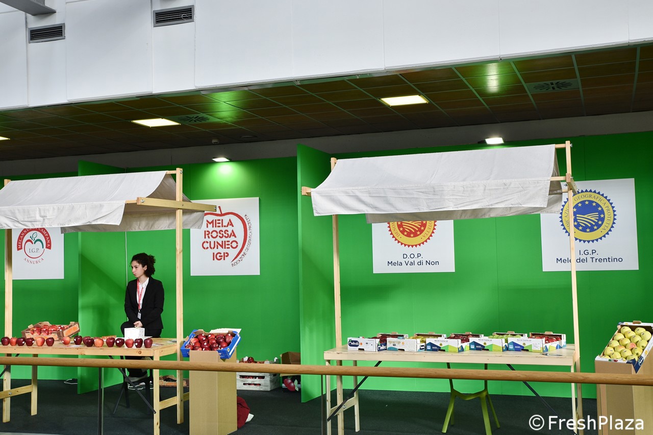 Nel corridoio di accesso ai padiglioni sono stati allestiti alcuni stand dedicati alle mele riconosciute a marchio IGP- Indicazione Geografica Protetta.