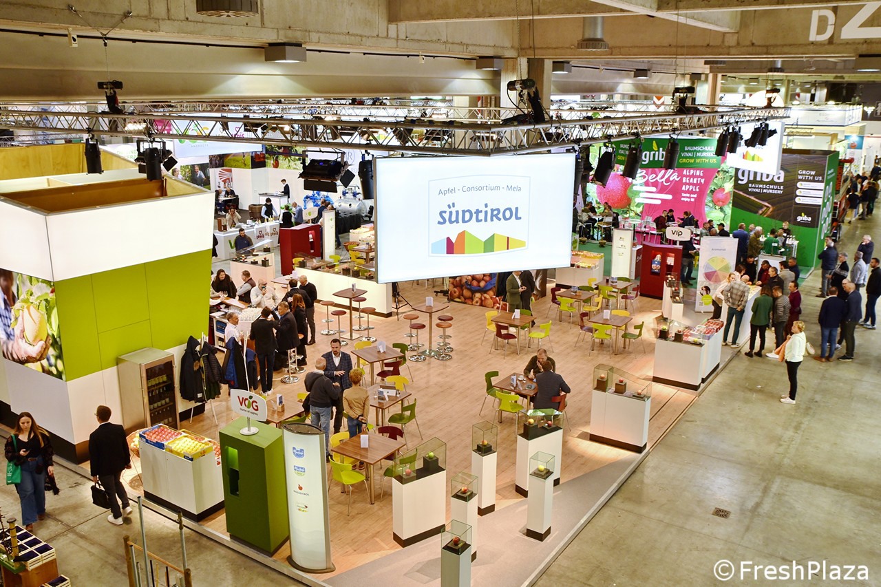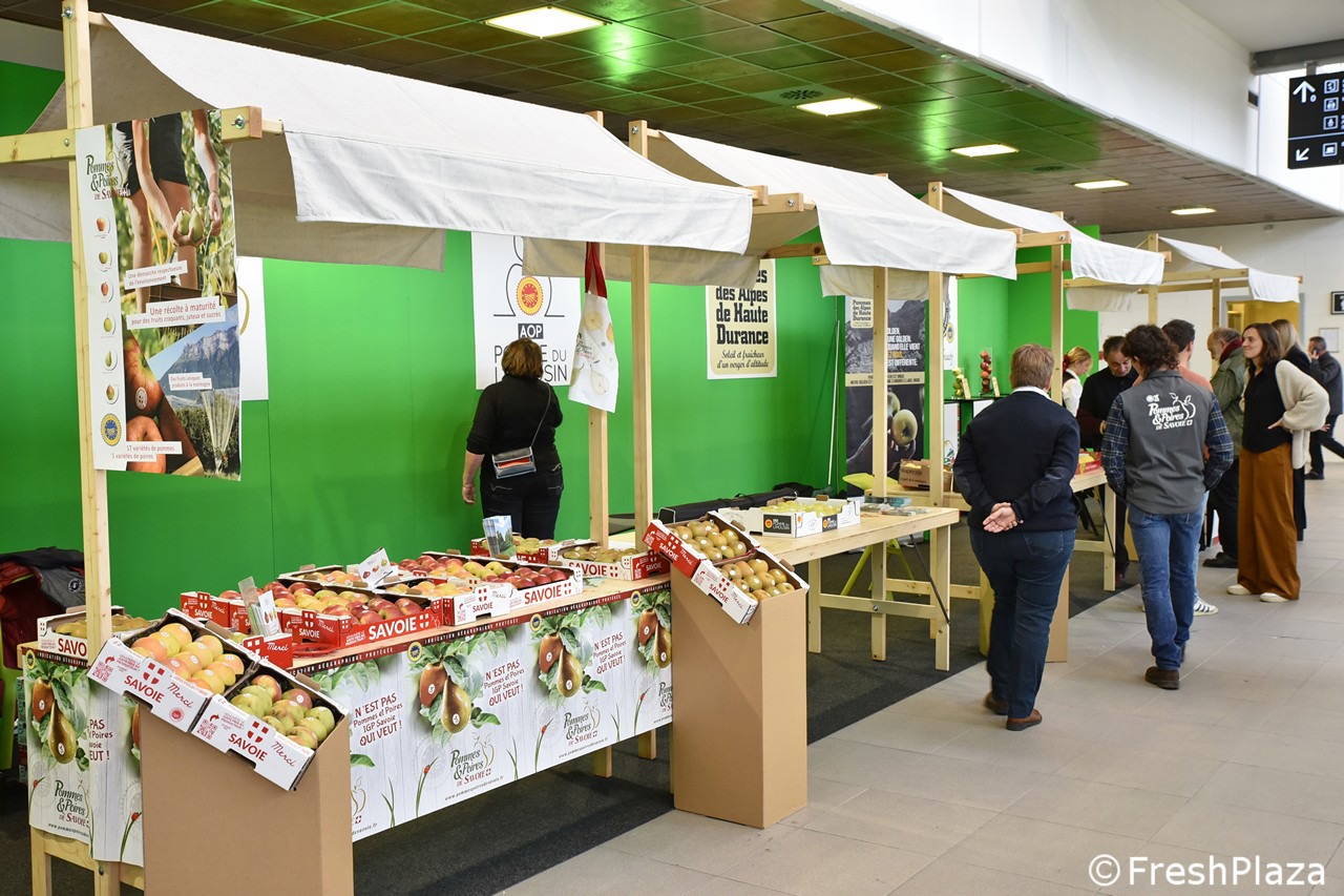 Tra gli stand, anche quelli relativi alle indicazioni geografiche di mele e pere d'oltralpe.