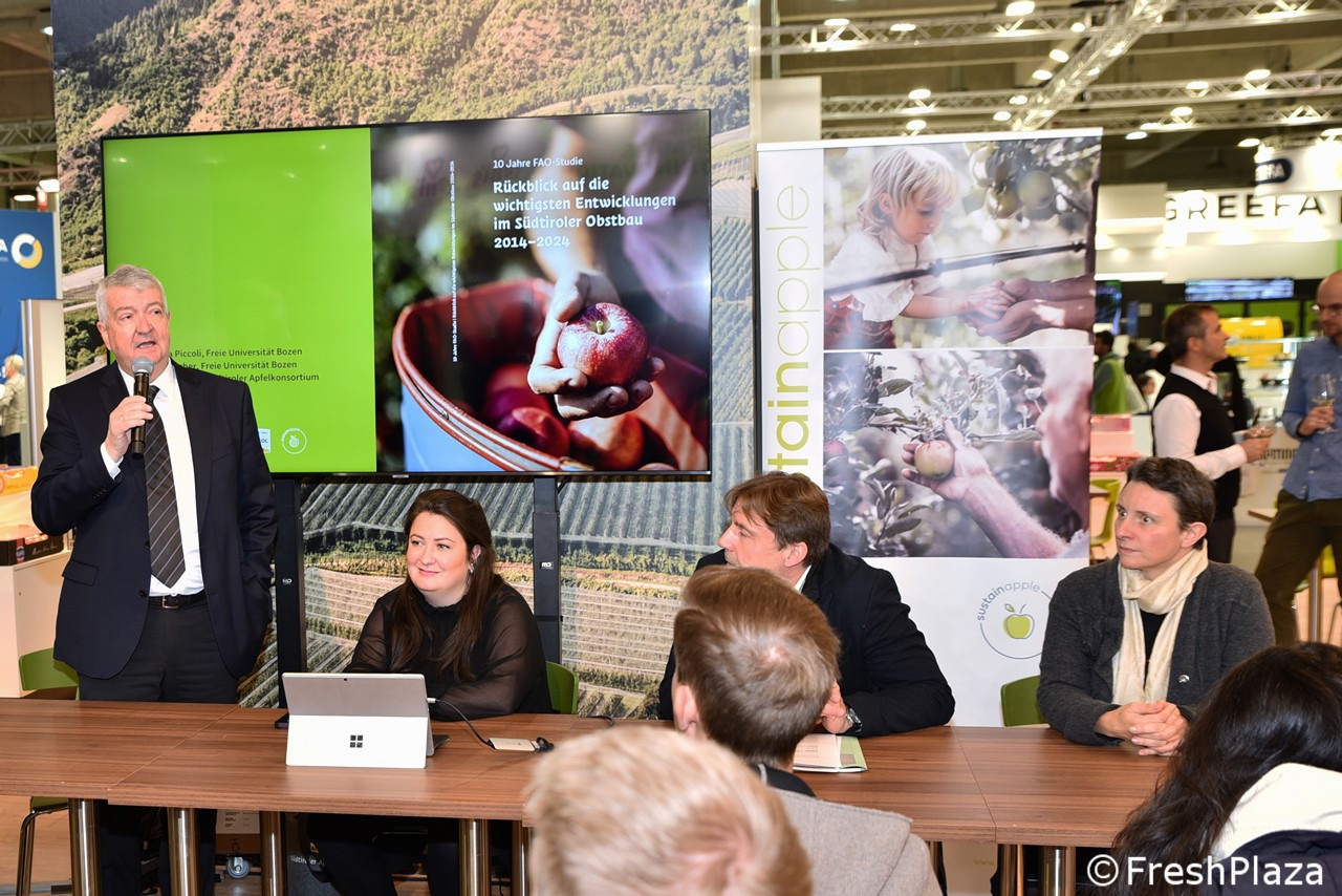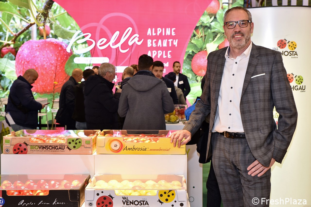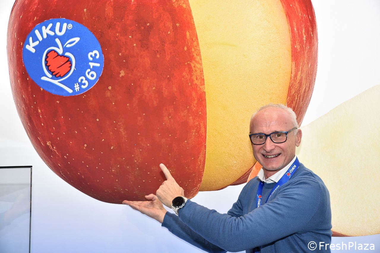 L'accoppiata vincente tra la mela KIKU e la famiglia Braun (qui in foto, Jürgen Braun, il quale in fiera ha anticipato prossime novità per il futuro non solo della propria organizzazione, ma della melicoltura nel suo complesso).