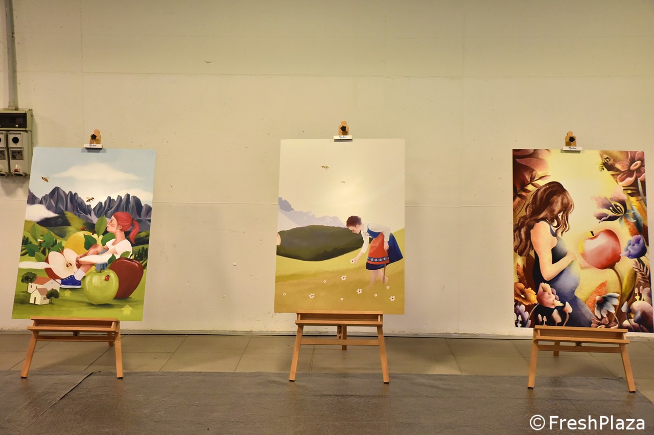 Interpoma è anche arte: in una delle gallerie di passaggio tra i padiglioni è stata allestita una mostra di tele ispirate al tema...