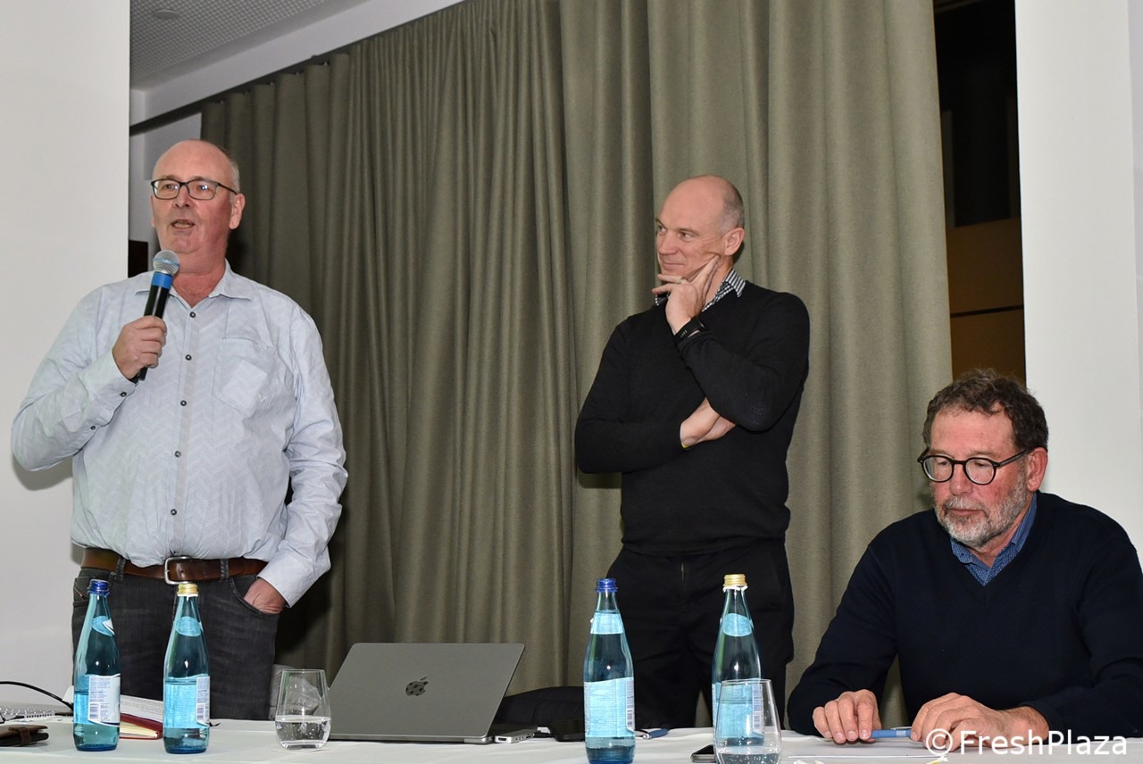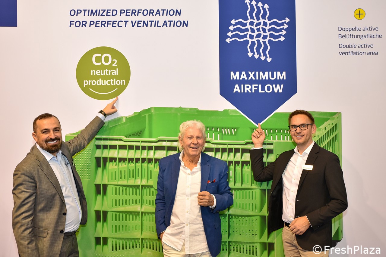 In occasione della fiera è stata ufficialmente lanciata una nuova, promettente, varietà di mela. Da sinistra: Kris Wouters (Wouters Fruit), Tony Martin (CEO di Prevar) e il ricercatore Richard Volz (Plant & Food Research).