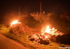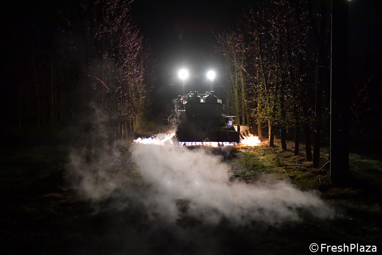Nella notte del 19 marzo 2025 un vasto fronte di aria fredda ha interessato gran parte dell'Italia. Gli agricoltori hanno utilizzato tutti i sistemi possibili per contrastare la gelata. Nelle prossime foto si possono vedere irrigazioni antibrina, bruciatori per aria calda o fiamme libere a terra per alzare la temperatura, fornelli a pellet, oltre alle ventole antibrina che, pur non vedendosi, ben si sentivano operare in campagna (fotoservizio Cristiano Riciputi)