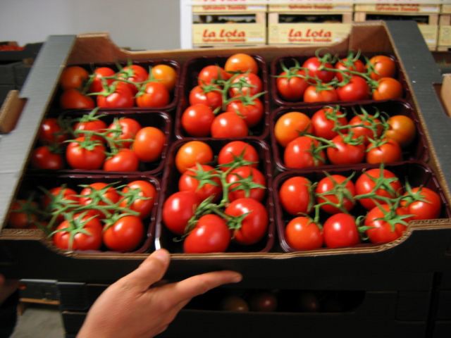 Tipologia a grappolo in vaschetta. Alcune di queste varietà di pomodoro sono selezioni realizzate dell'azienda sementiera De Ruiter Sementi.