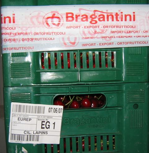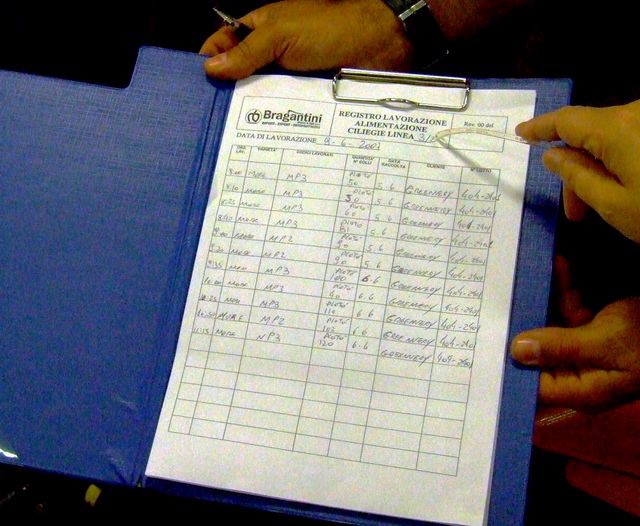 Il prodotto in arrivo riceve un codice d'identificazione, comprensivo dei dati relativi al produttore, alla varietà di ciliegia, al calibro, alla data di ricevimento.