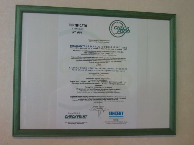 Qui vediamo la certificazione ottenuta relativamente alla filiera delle mele da produzione integrata.