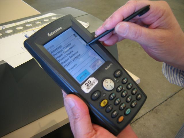 Quando il produttore consegna la merce, tutti i suoi dati vengono registrati mediante questo apparecchio.