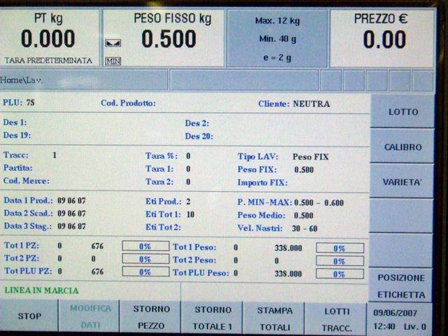 Anche in questo caso, sul peso effettivo dei cestini vigila questa bilancia elettronica. Quando un cestino è più leggero, il macchinario sospende l'erogazione dell'etichetta.