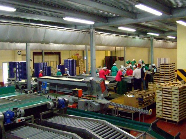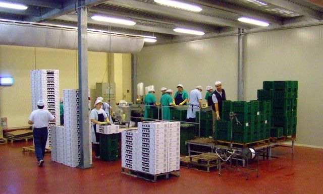 Qui vediamo una delle celle frigorifere (a 4 gradi centigradi), dove il prodotto ricevuto sosta momentaneamente, in attesa di essere inviato alle linee di confezionamento.