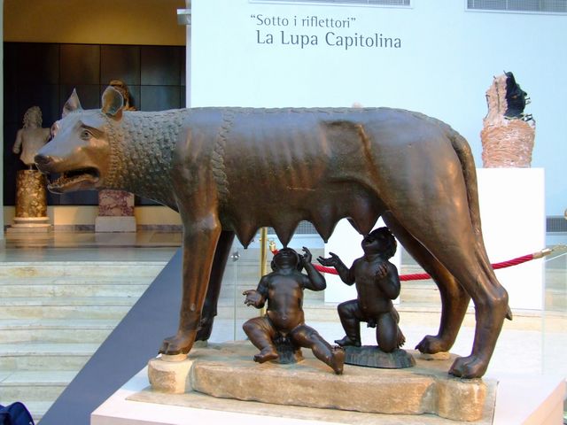 La statua della Lupa Capitolina, simbolo di Roma. La leggenda vuole che Romolo e Remo vennero allattati da una lupa, dopo essere stati abbandonati.
