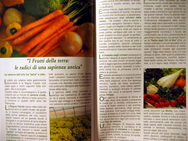 "Dettaglio della guida "Sua Eccellenza il Piemonte". Questa è la sezione dedicata alle produzioni ortofrutticole tipiche di questa regione. La guida abbina alla descrizione dei prodotti enogastronomici piemontesi curiosità e aneddoti storici legati alla cucina e alle tradizioni culinarie, come la storia delle Tome di Annibale o la leggenda dello zabaione. Non mancano poi le indicazioni per un perfetto viaggio tra arte, cultura e gusto tra i luoghi più belli e i monumenti più importanti del Piemonte. Per ogni settore di produzione, la Guida contiene gli indirizzi "giusti" dove poter acquistare i prodotti direttamente nelle cooperative, in un virtuoso percorso che va dalla terra alla tavola."