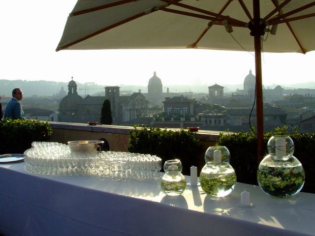 Gli ospiti sono invitati ad un cocktail in terrazza, in attesa della cena.