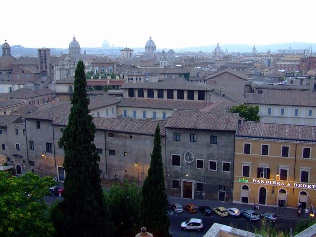 La vista sui tetti di Roma dalla Terrazza Caffarelli del Campidoglio.