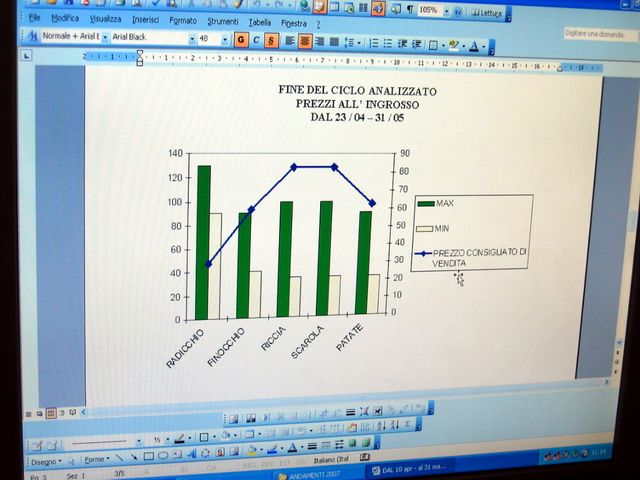 "Vincenzo si è organizzato per tenere costantemente sotto controllo l'evoluzione dei prezzi per i principali prodotti d'interesse per la Bassi Ortaggi, come finocchi, patate e radicchio. "Cerchiamo di comprendere le dinamiche di mercato, anche se spesso l'andamento dei prezzi sembra seguire logiche tutte sue. Io aggiorno quotidianamente le mie tabelle e stilo una relazione mensile sul mercato. Questo mi consente di muovermi con piena consapevolezza di quel che accade intorno a noi. Uno dei limiti della realtà agricola locale è proprio la carenza di informazioni basilari, cosa che genera improvvisazione, con ricadute negative per tutto il settore."