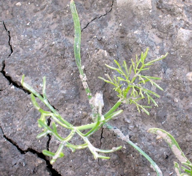 "Nel dettaglio del campo di finocchio, si vedono anche alcune piante infestanti. Vincenzo spiega: "A differenza dell'agricoltura convenzionale, nella quale i trattamenti prescindono dall'osservazione dei cicli naturali, nella produzione integrata anche la presenza delle infestanti diventa un'indicazione preziosa per comprendere lo stato e le problematiche del terreno e intervenire quindi a posteriori e miratamente. Di solito procediamo ad una estirpazione manuale, per ridurre le infestanti a un 10%. La fase della zappatura consente poi di mantenere solo le piante di finocchio che a quel punto, non soffocate dalle infestanti, possono crescere rigogliosamente."