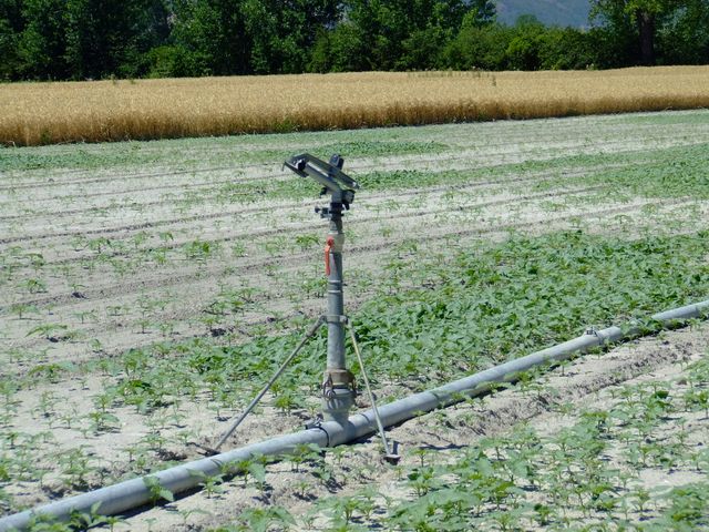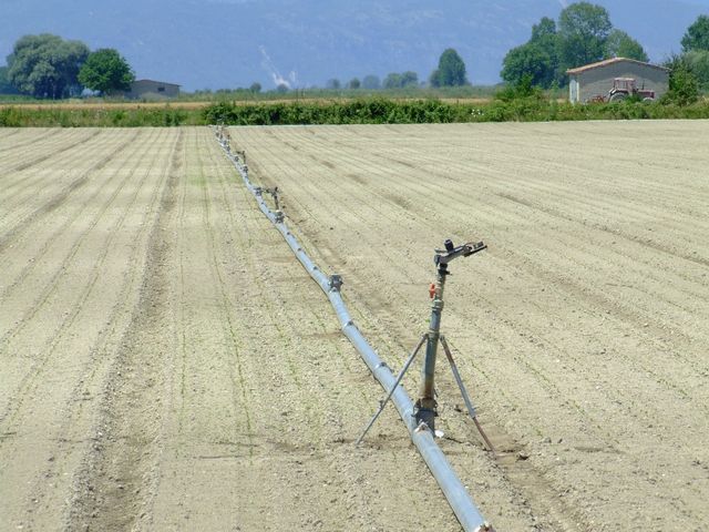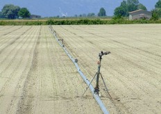 "Il campo di finocchio è dotato di un sistema di irrigazione a pioggia, caratterizzato dal fatto di lavorare a pressione costante dell'acqua e dal fatto di essere smontabile e trasferibile su altri campi. "Fissare una pressione costante per l'acqua - spiega Vincenzo - consente di ridurre gli sprechi e anche di calcolare l'effettivo apporto idrico che viene dato alla coltura. Tutto l'impianto è "portatile", nel senso che lo trasferiamo di campo in campo, a seconda delle necessità."