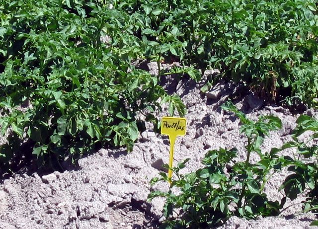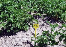 "Il cartellino identificativo con la lettera A, indica il codice per le patate. "La varietà che coltiviamo per il consumo fresco è la Agata, una patata che può raggiungere una resa produttiva anche di 80 tonnellate per ettaro, soprattutto nelle zone dove c'è una forte escursione termica. Per la concimazione utilizziamo una stabbiatura sintetica, che ci permette una standardizzazione nei livelli di sostanze nutritive."