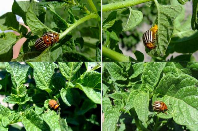 "Qui vediamo il ciclo vitale della Dorifora, il coleottero infestante delle patate. Da in alto a sinistra: l'accoppiamento, la deposizione delle uova, la larva e l'insetto adulto. L'agronomo Paolo Percossi spiega: "Anche nel caso della Dorifora, i trattamenti che effettuiamo sono sempre mirati e a posteriori. Cerchiamo prima di capire l'entità del problema e poi interveniamo."
