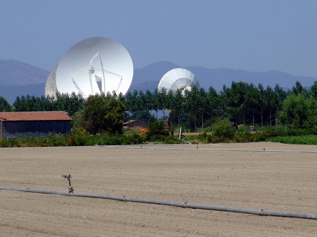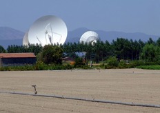 Il campo di radicchio di trova proprio a ridosso del centro tecnologico della TeleSpazio. Affascinante il contrasto tra i terreni agricoli e le modernissime parabole.