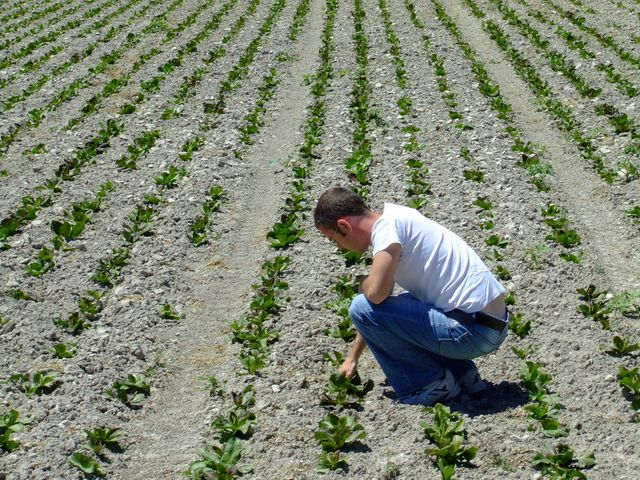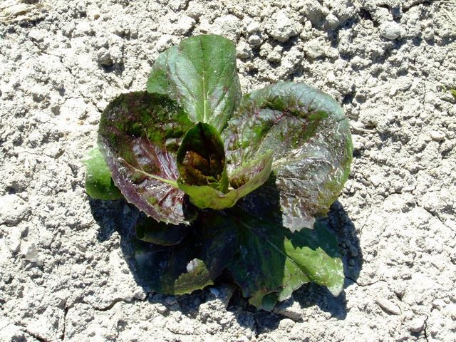 Qui siamo su un campo di radicchio zappato e irrigato, con piantine di oltre due mesi. Il periodo di raccolta è a fine luglio.