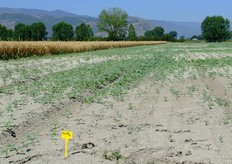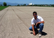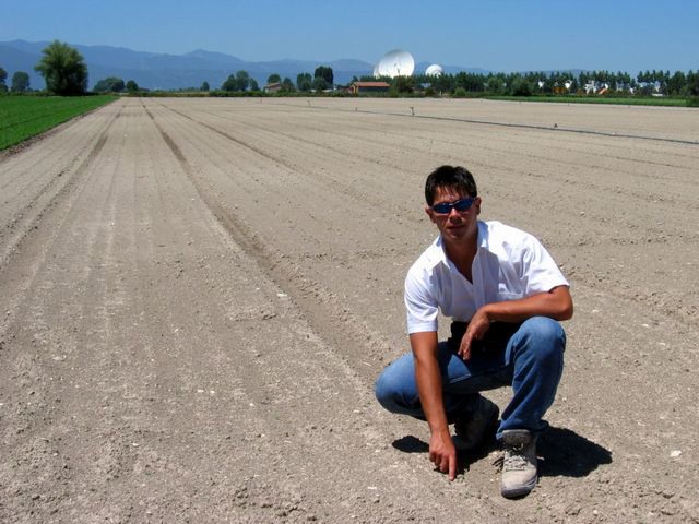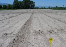 Ci spostiamo ora su un campo di due ettari, seminato a radicchio da venti giorni. Il terreno è a medio impasto. Per un prodotto più precoce va bene un terreno più fine.