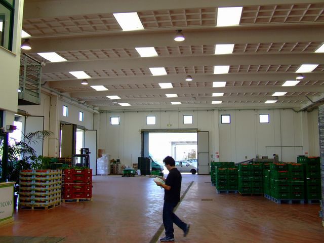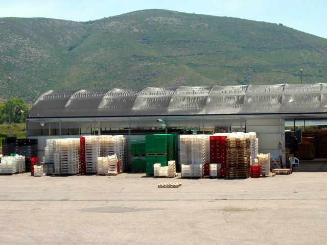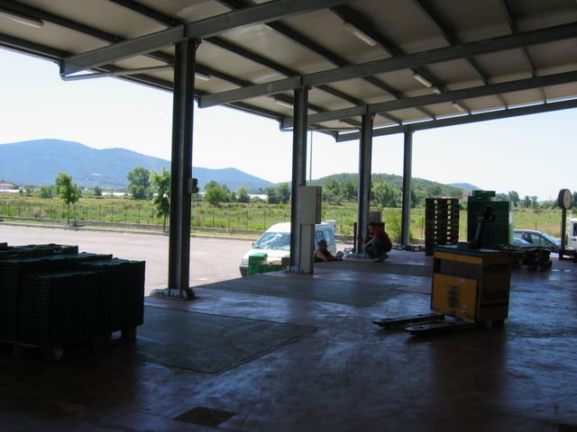 Sul fondo del piazzale, sempre nella parte retrostante il centro di confezionamento, si vede la struttura del centro imballaggi.