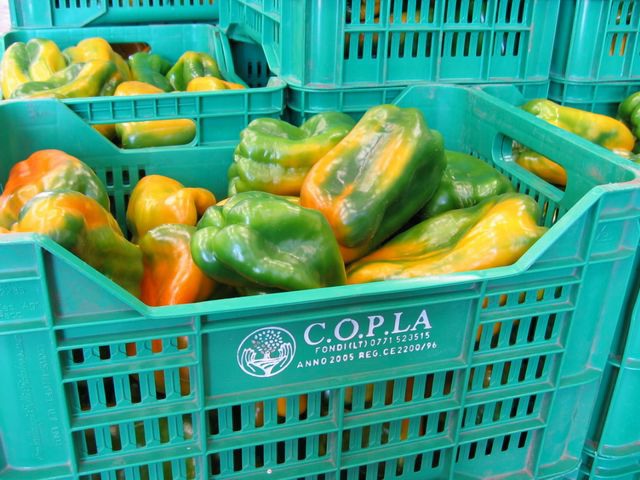Casse di peperoni giunti dalla campagna attendono di essere lavorati.